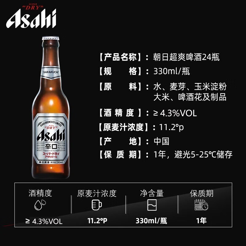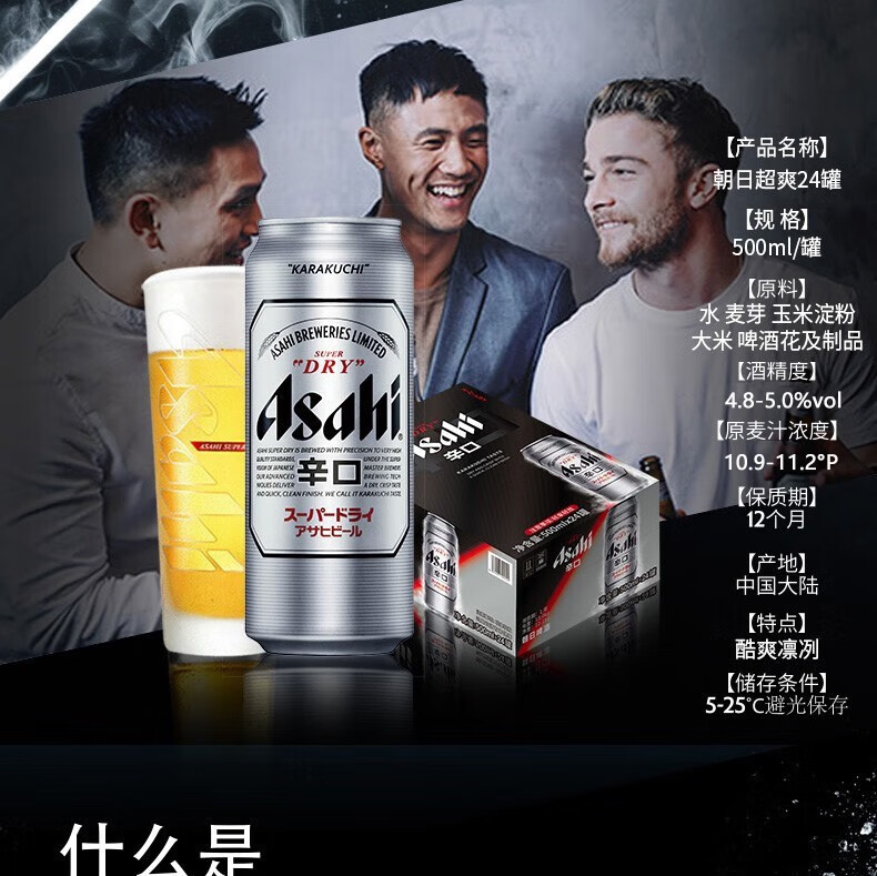 这款超爽就是朝日最有名的一款啤酒,优选大麦芽、啤酒花以及天然水源,生产中营造出一种无菌的环境,杜绝杂菌的污染,从而保证了酵母的纯种发酵,产出的啤酒具有最纯正的口感和风味,最适合冰镇后饮用。