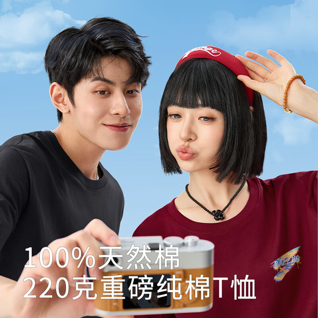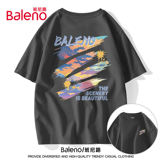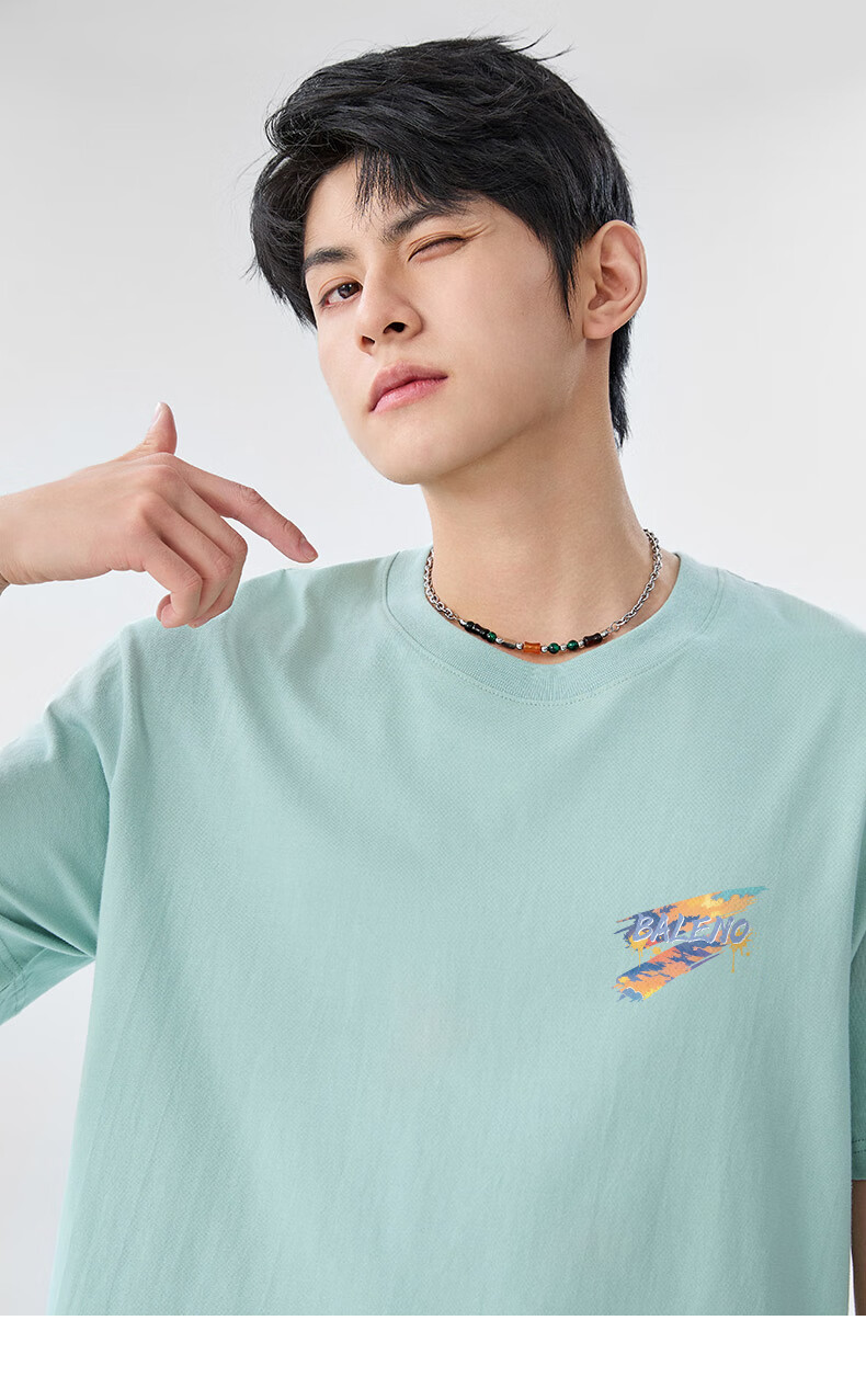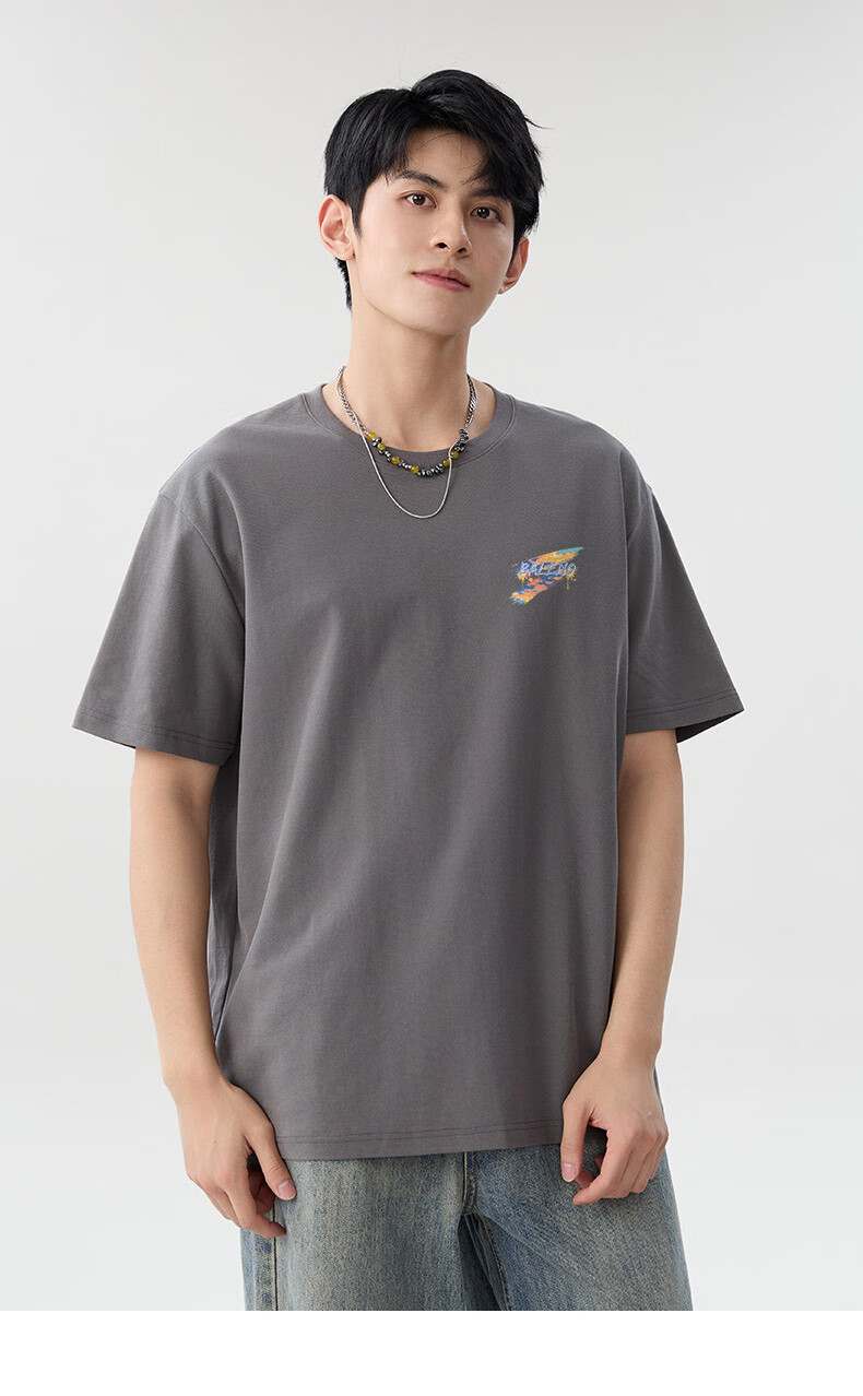 班尼路(Baleno)短袖男夏季美式潮牌学生休闲百搭纯棉t恤男重磅宽松情侣半袖上衣 5XL 中灰/B彩云