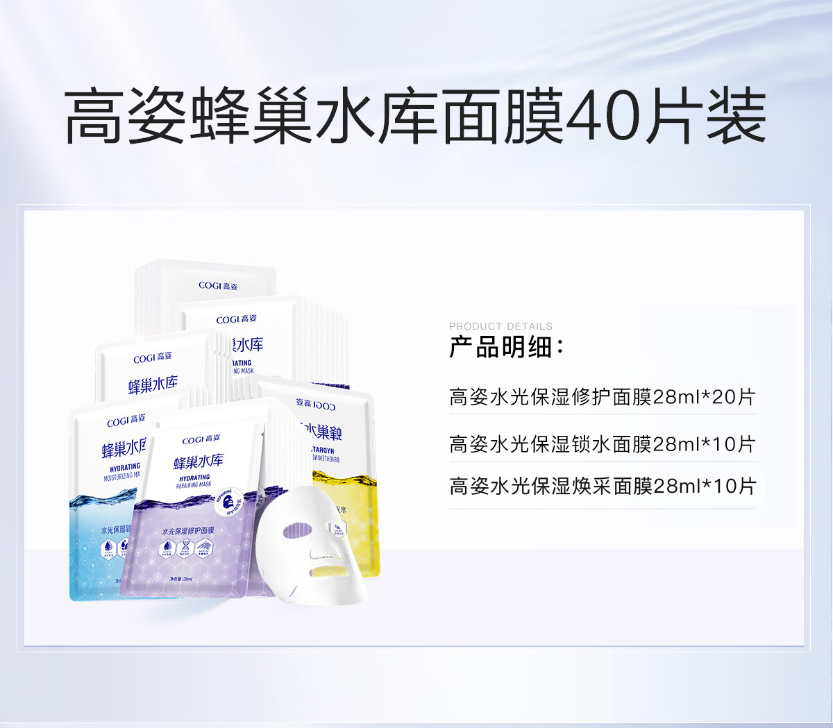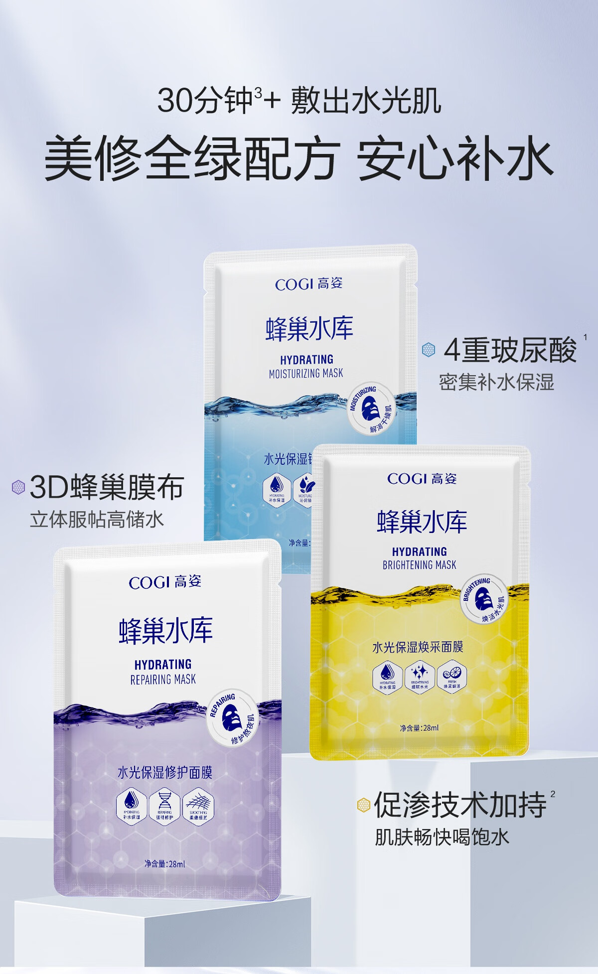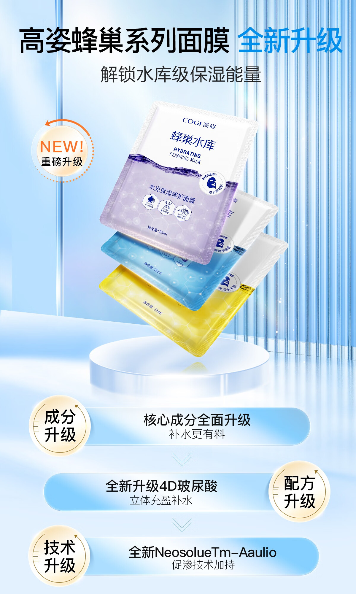高姿蜂巢修护补水面膜:熬夜党的急救站