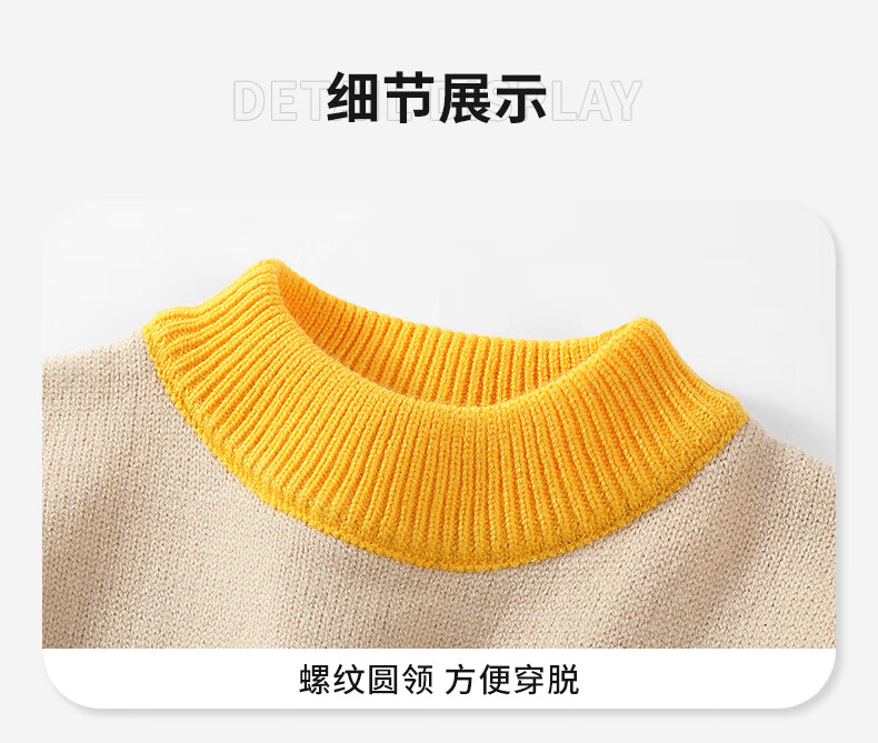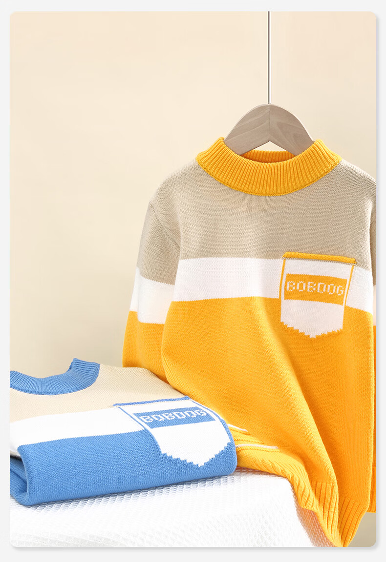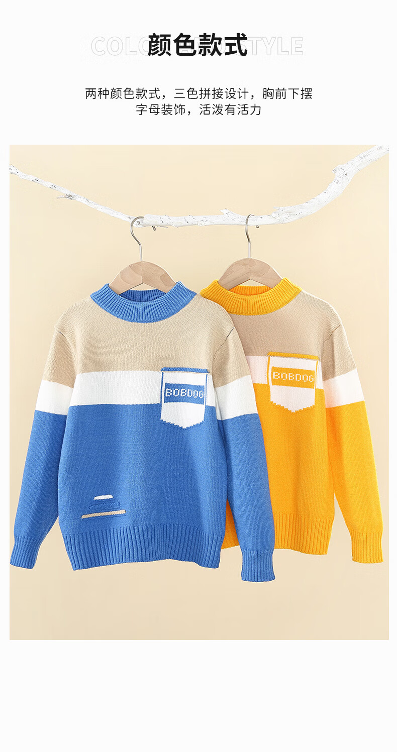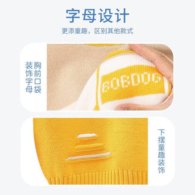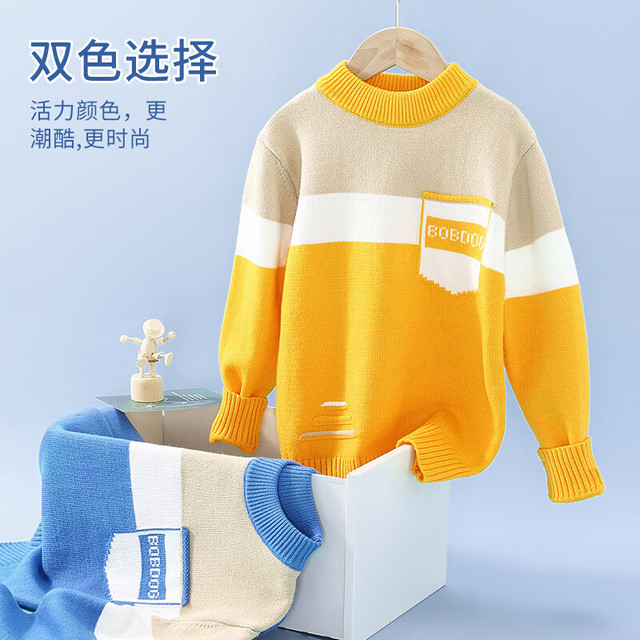 BoBDoG巴布豆儿童毛衣秋冬款时尚百搭上衣保暖中大童秋装洋气可爱童装 黄 130cm