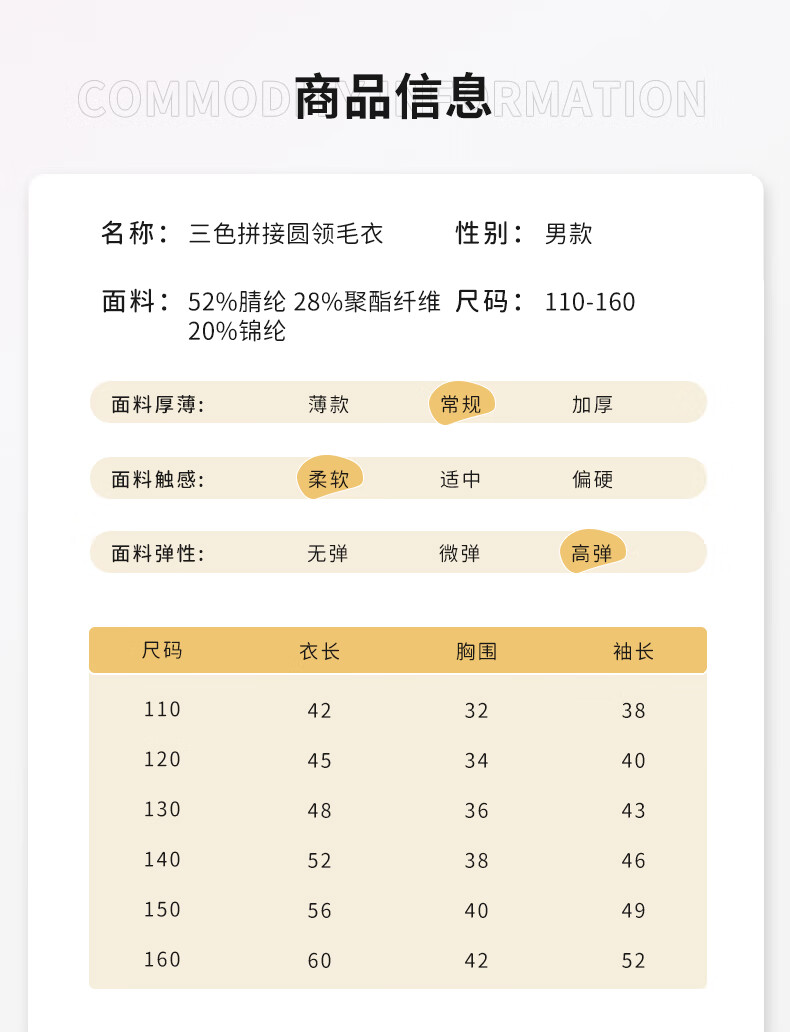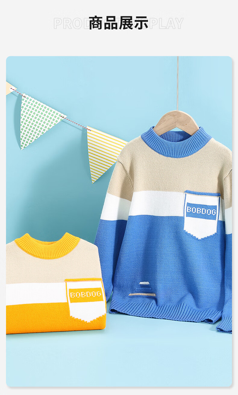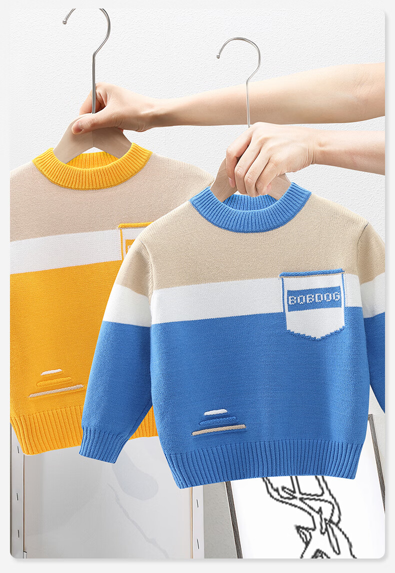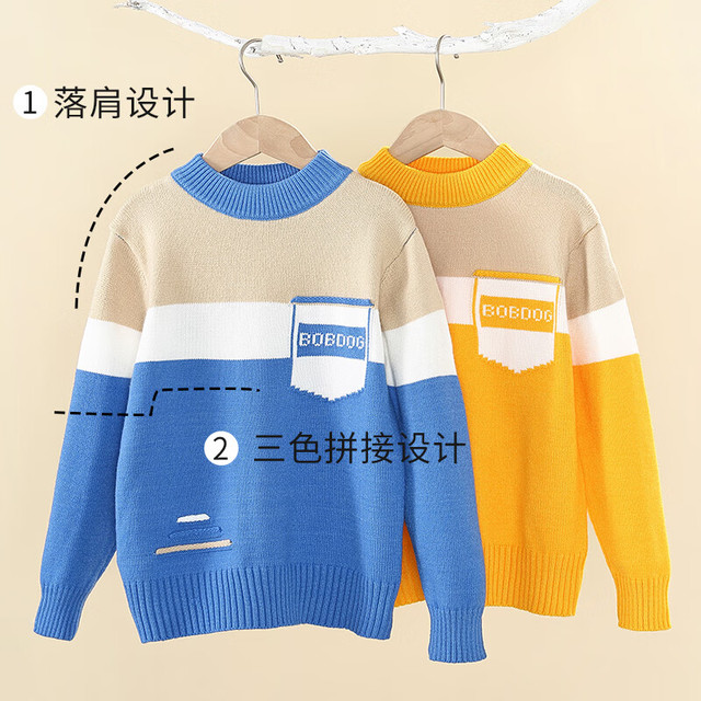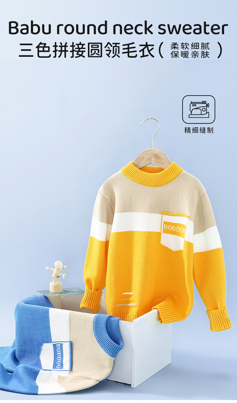 BoBDoG巴布豆儿童毛衣秋冬款时尚百搭上衣保暖中大童秋装洋气可爱童装 黄 130cm