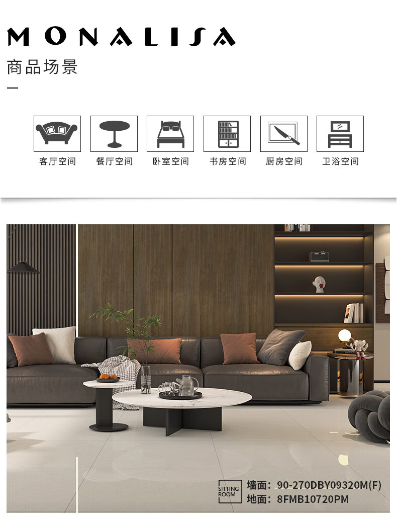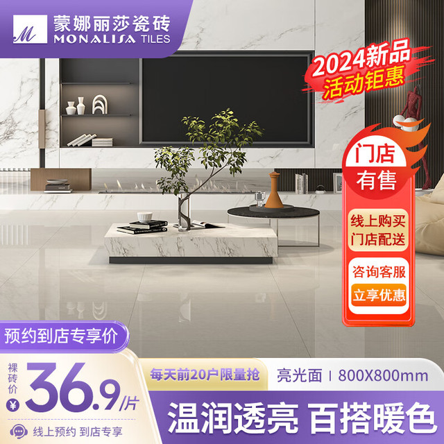 MONALISA 蒙娜丽莎瓷砖 大理石纹瓷砖 浅灰 800*800mm