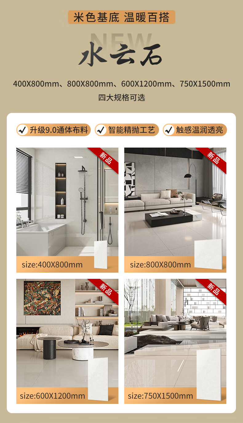 蒙娜丽莎(monalisa) 蒙娜丽莎瓷砖900*1800陶瓷大板奶油色银河白FMB10445PM通体亮光 90-180FMB10445PM【单片价格】