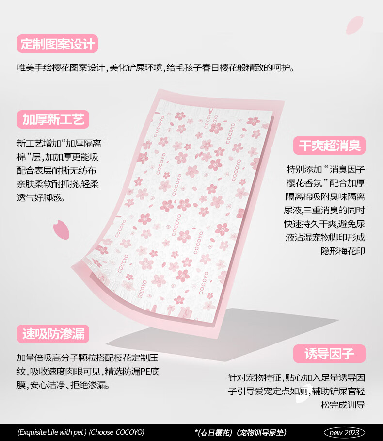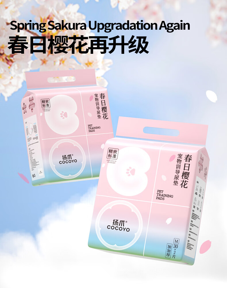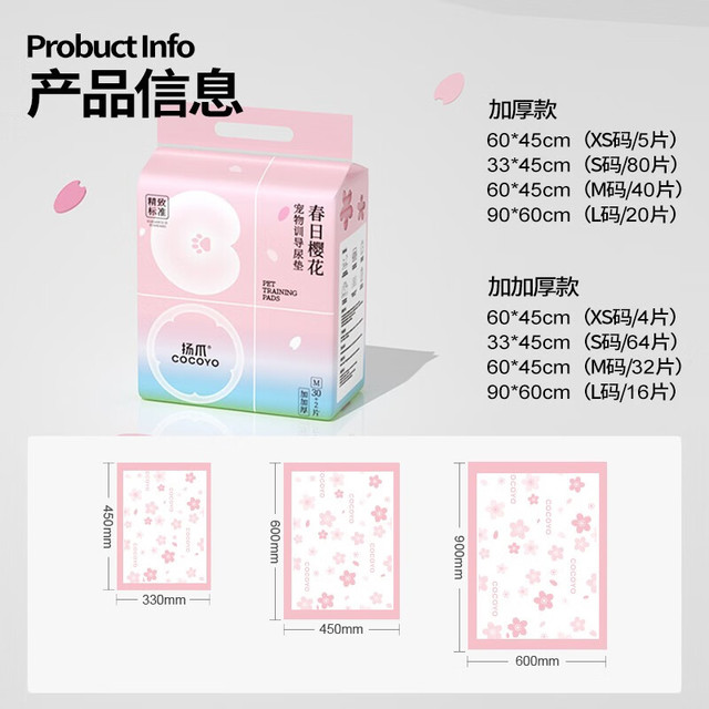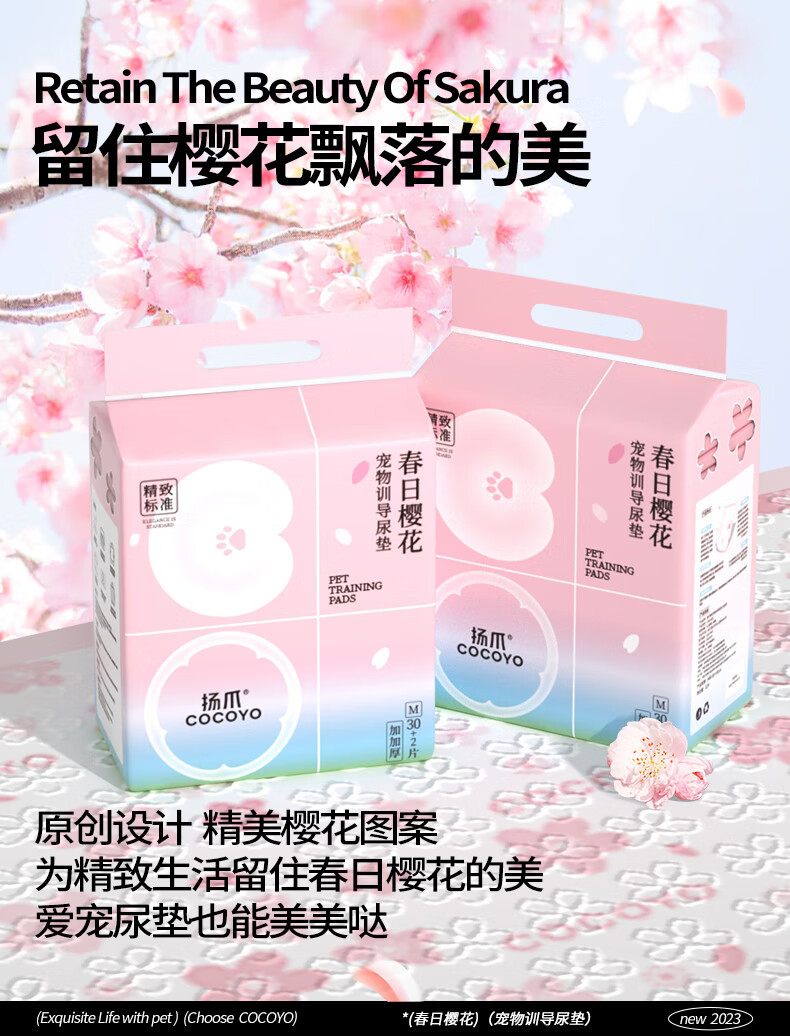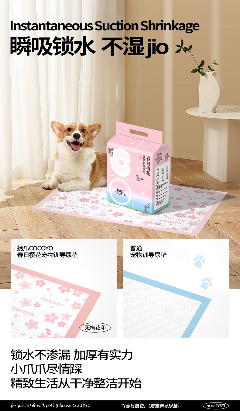 COCOYO扬爪春日樱花新款狗尿垫宠物尿垫狗狗尿片尿不湿除味系列 加 M-中型 40片