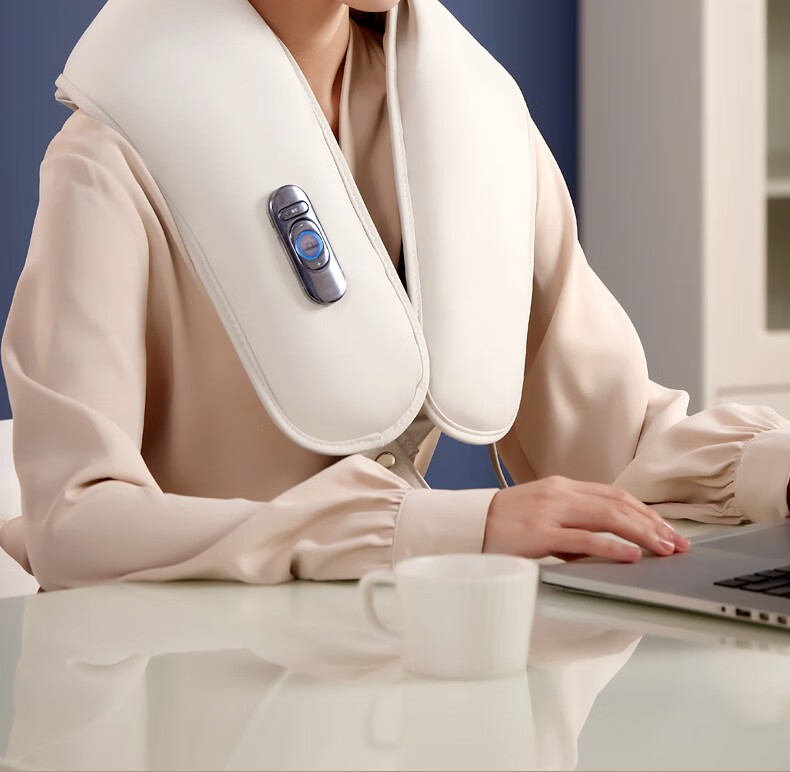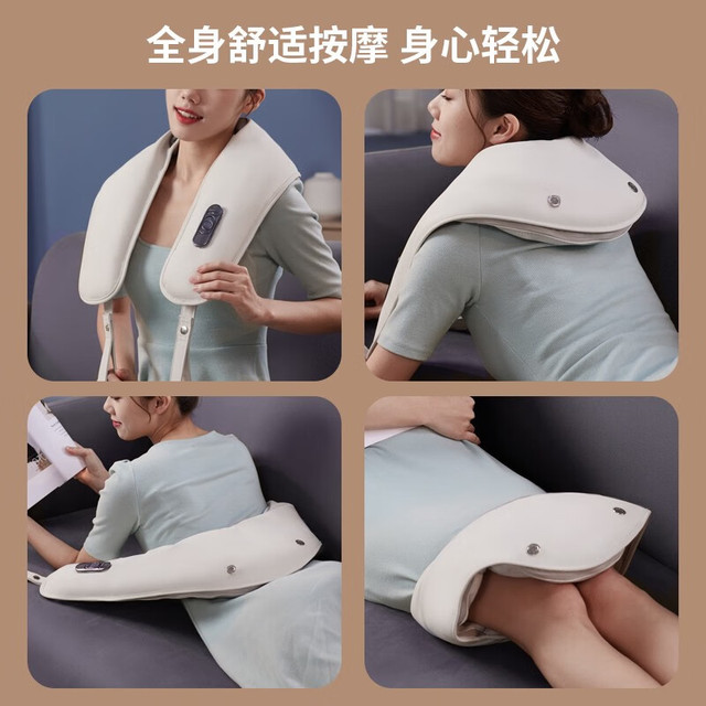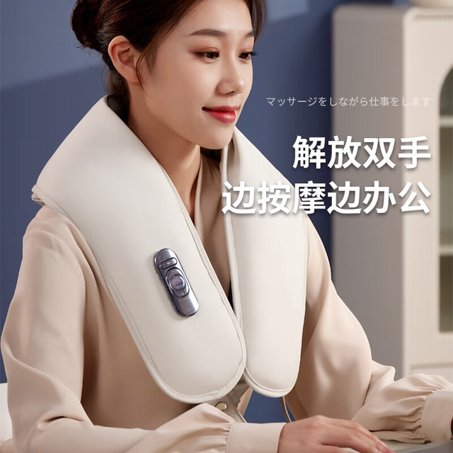 HKA 日本颈椎按摩器肩颈按摩披肩捶打斜方肌腰背按摩仪多功能一体机热敷办公家用父亲节礼物 月尊白升级款