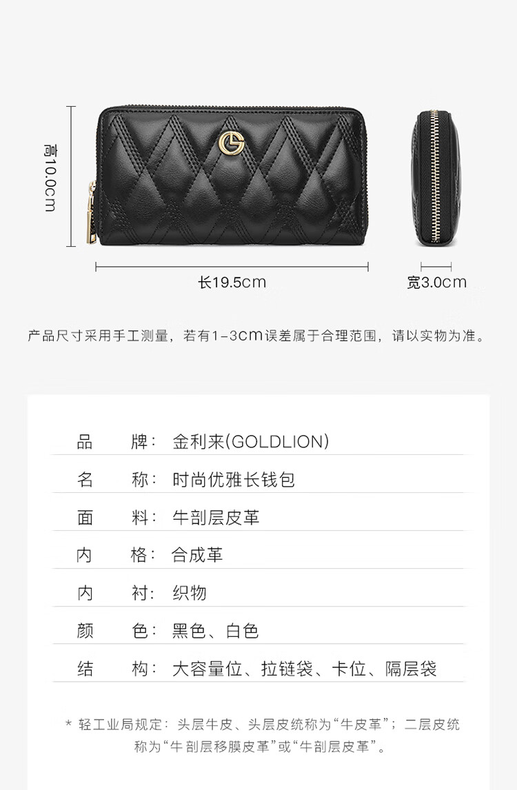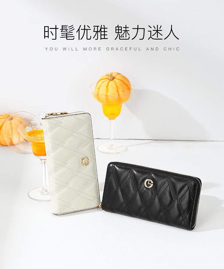 金利来女士钱包时尚长款拉链钱夹票夹礼盒 FA533005-141 白 新年女友