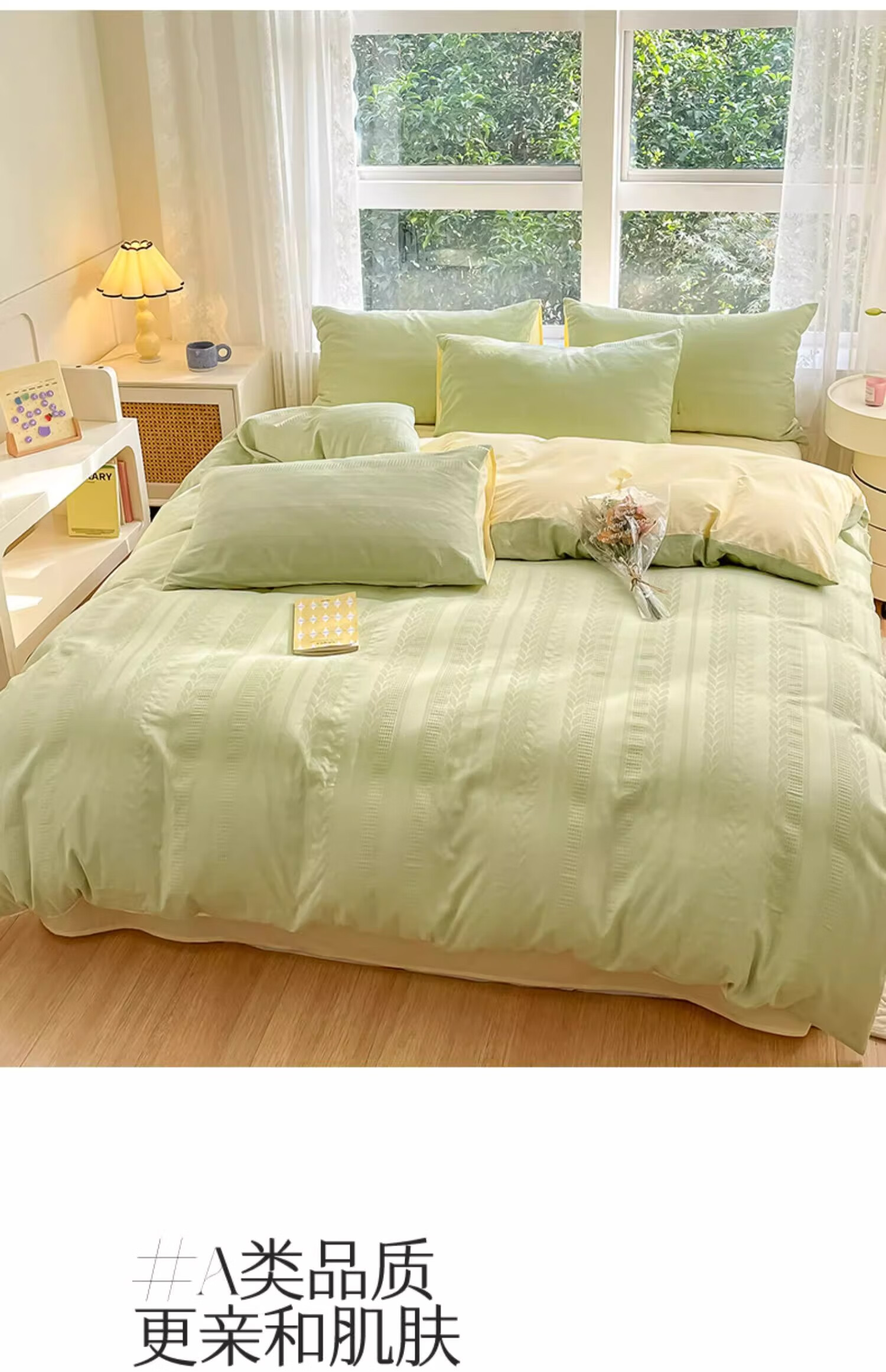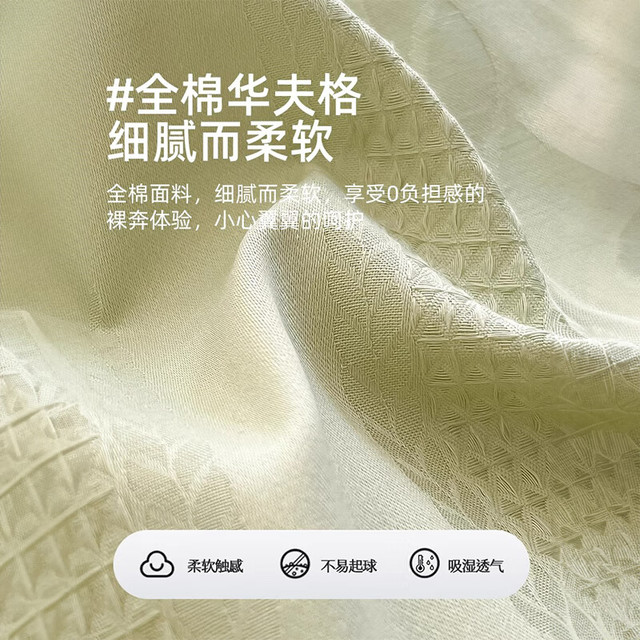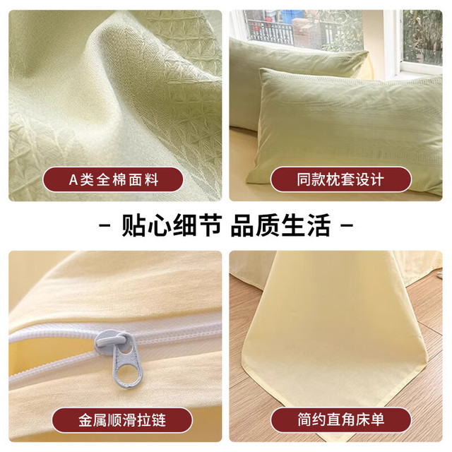 猫人A类纯棉床上四件套100全棉华夫格床单被套罩床笠款单人宿舍三件套 天空蓝【A类全棉 亲肤细腻】 0.9/1.2m床单三件套-被套150x200