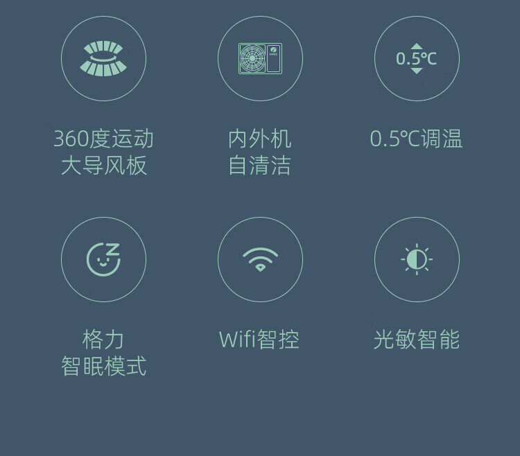 智能调节、独立除湿、WIFI智控、大导风板