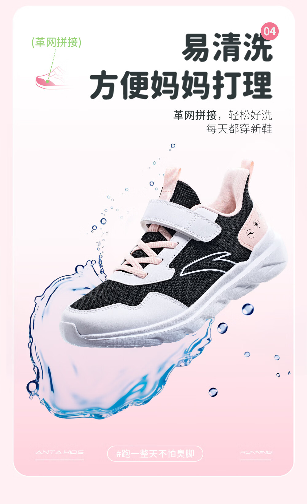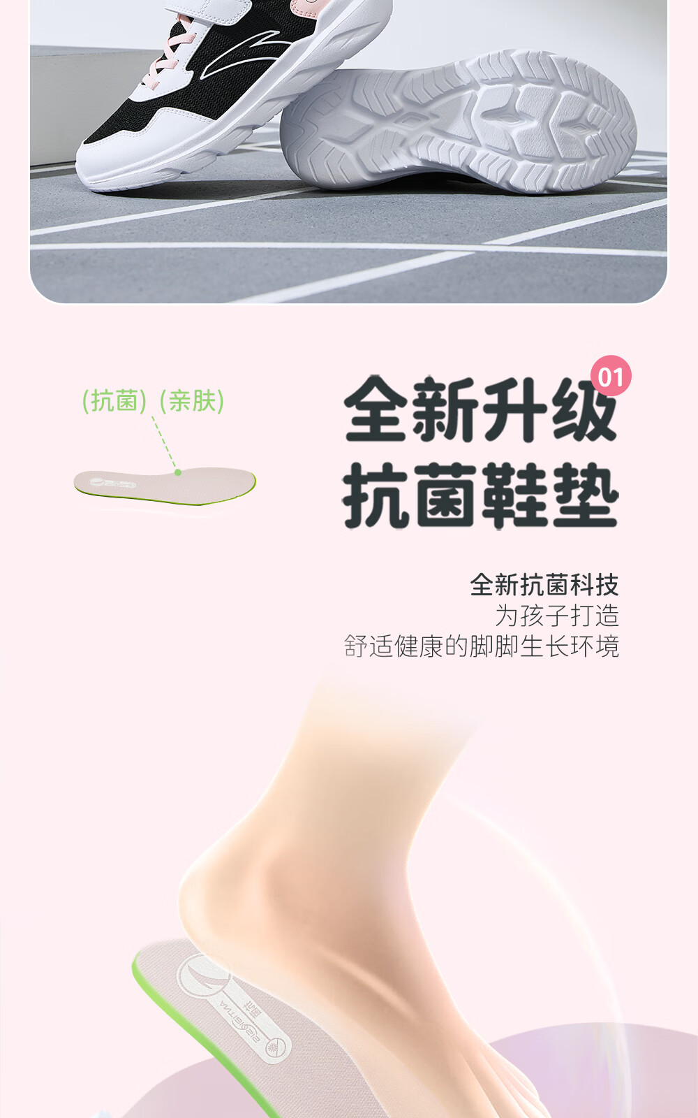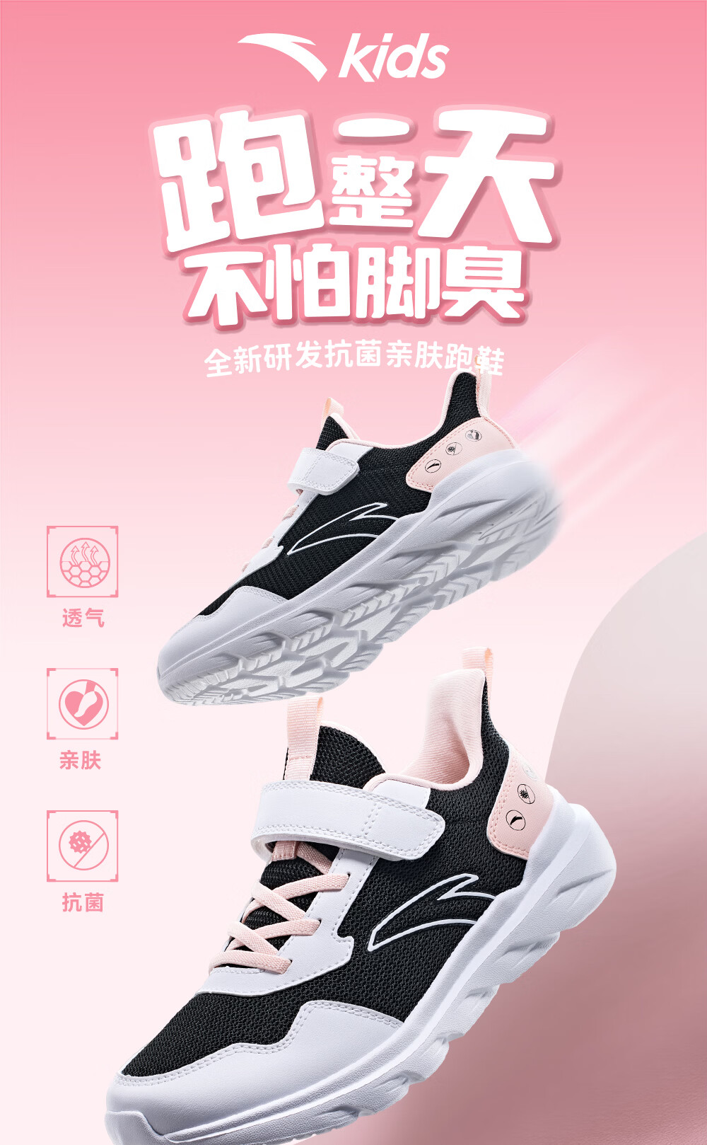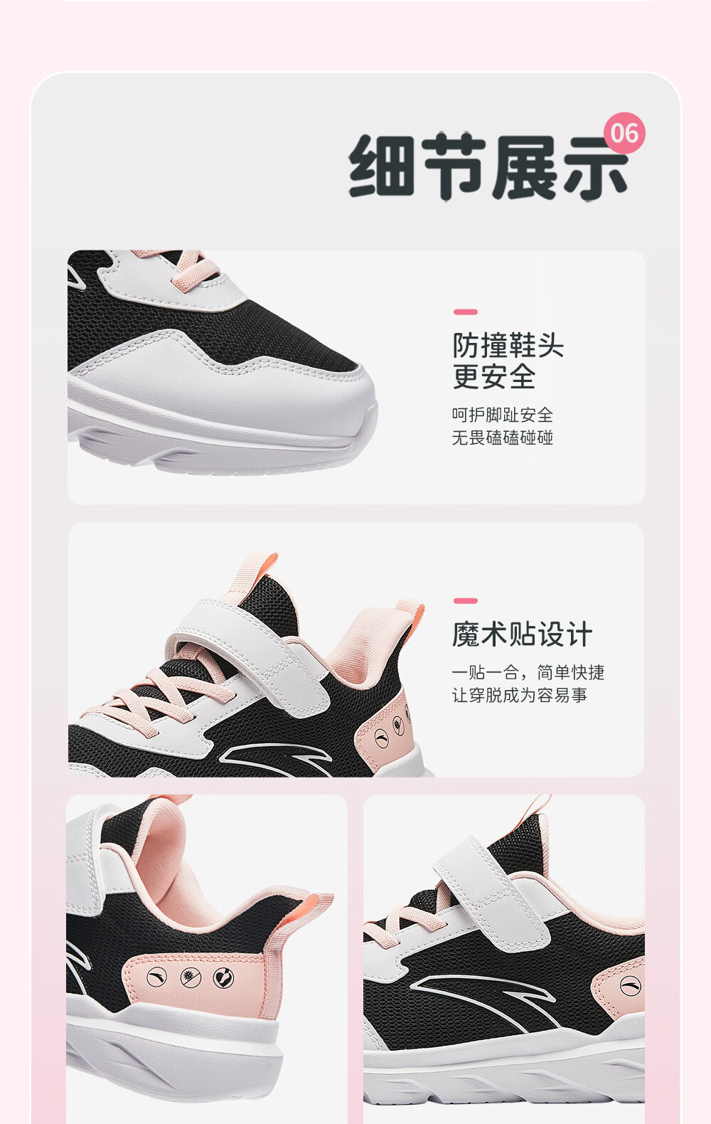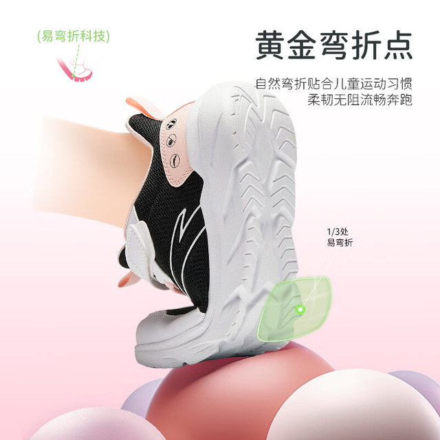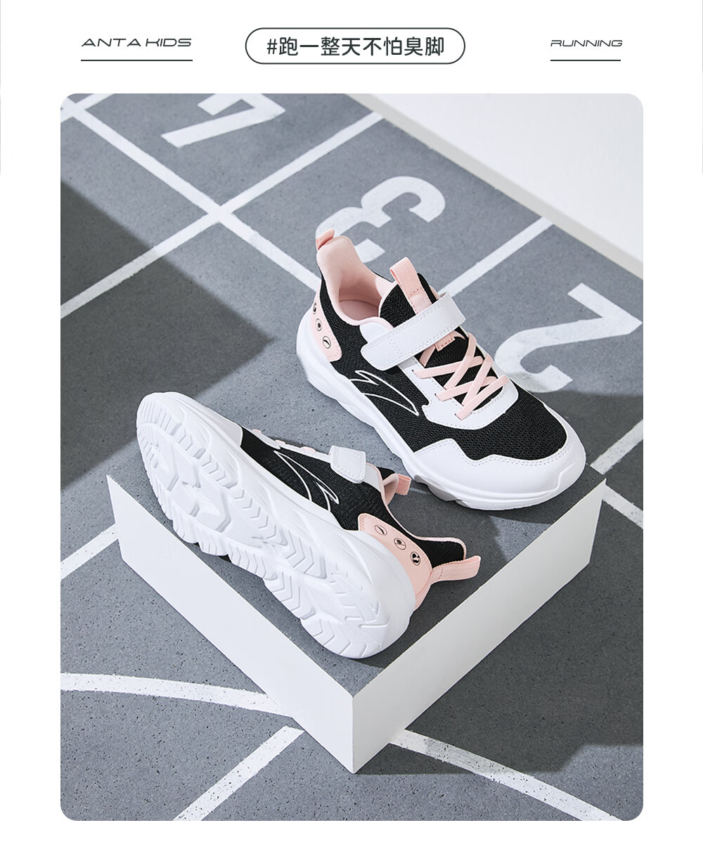 ANTA/安踏 软弹轻便 儿童运动鞋 【女密网】黑/安踏白/婴儿粉-6 38 鞋内长24cm