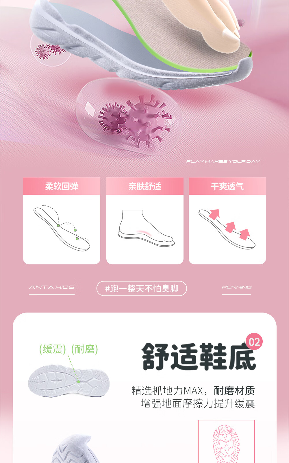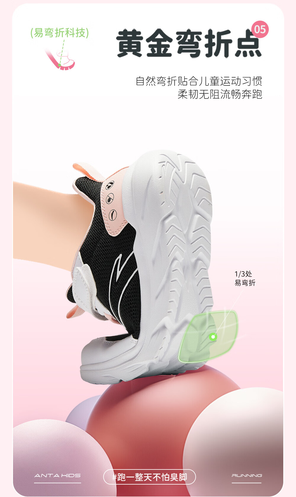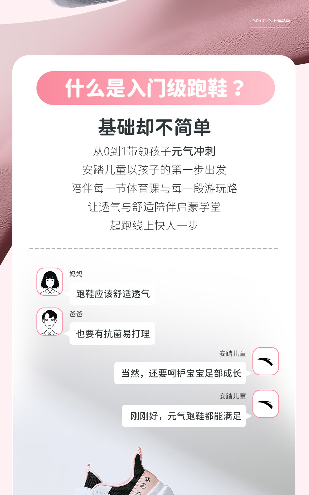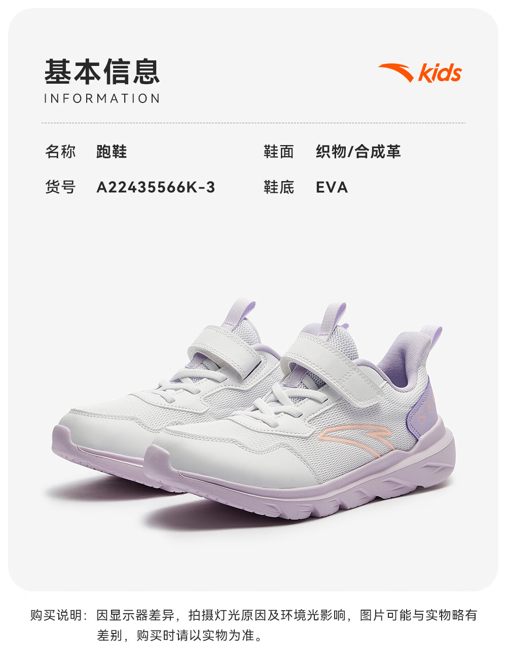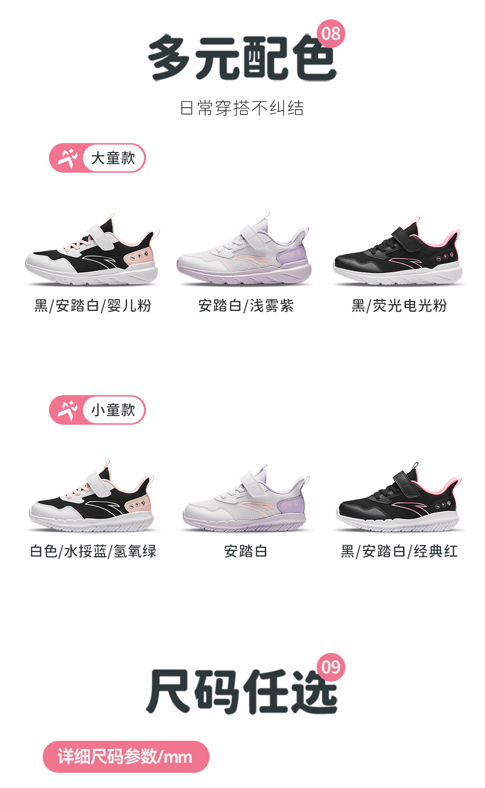 ANTA/安踏 软弹轻便 儿童运动鞋 【女密网】黑/安踏白/婴儿粉-6 38 鞋内长24cm