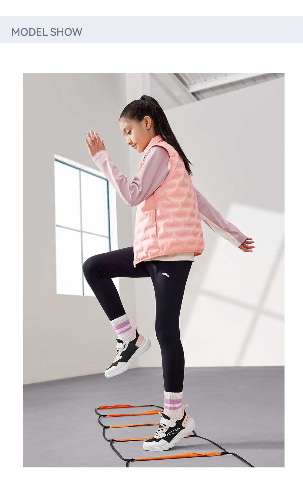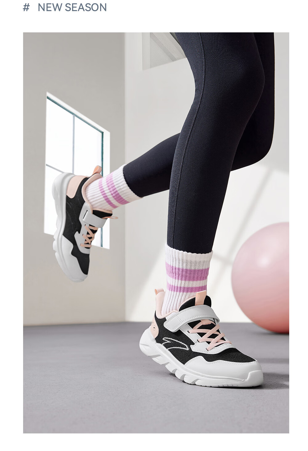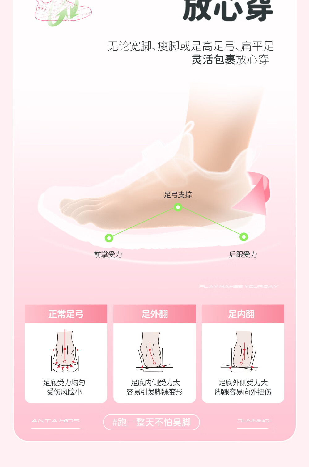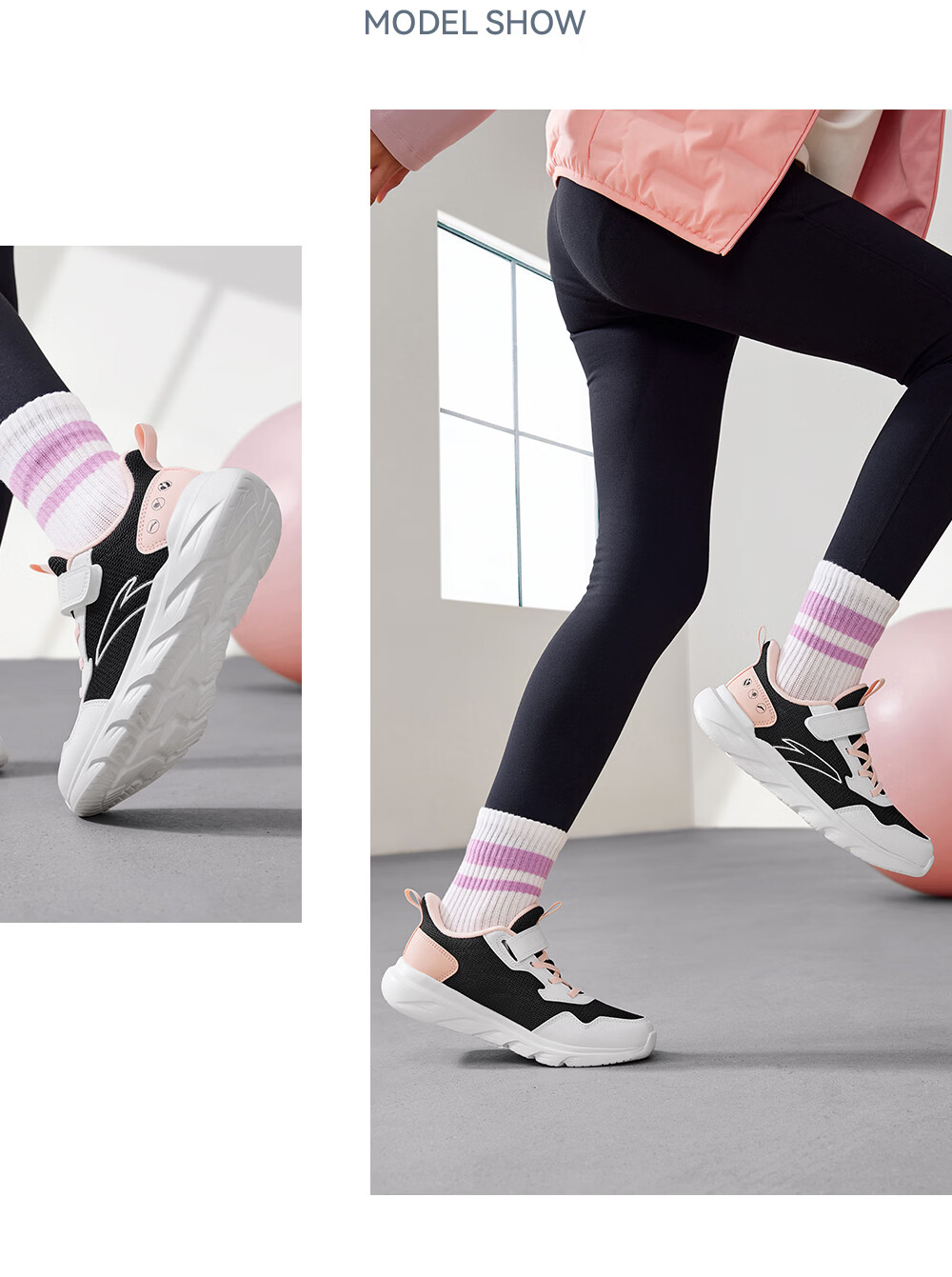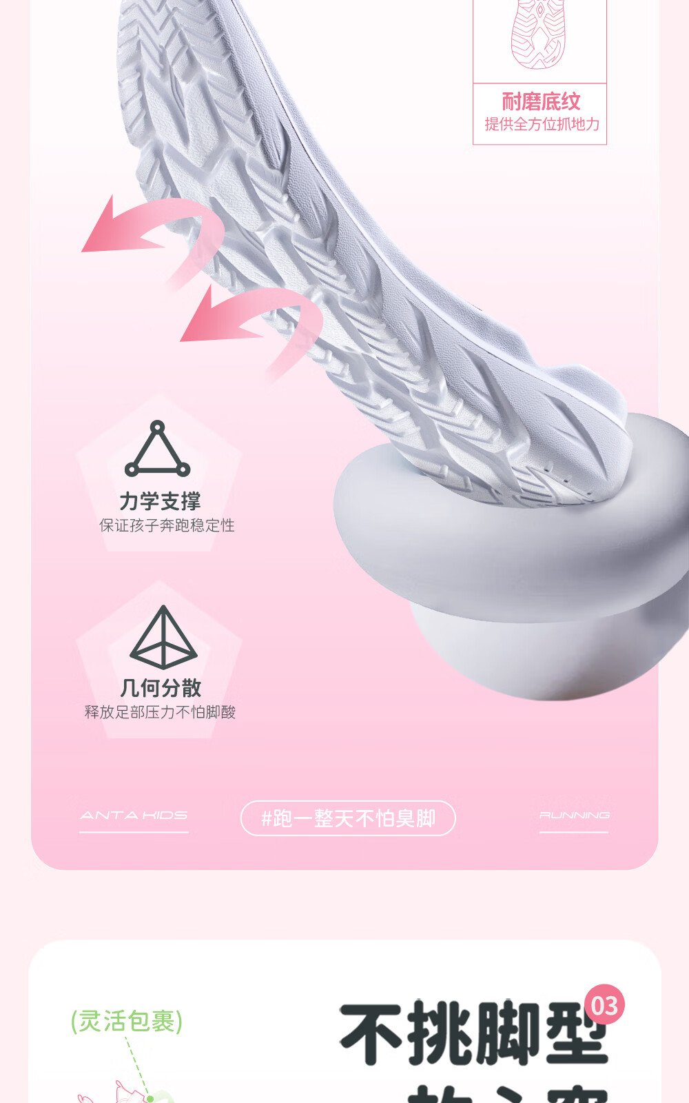 ANTA/安踏 软弹轻便 儿童运动鞋 【女密网】黑/安踏白/婴儿粉-6 38 鞋内长24cm