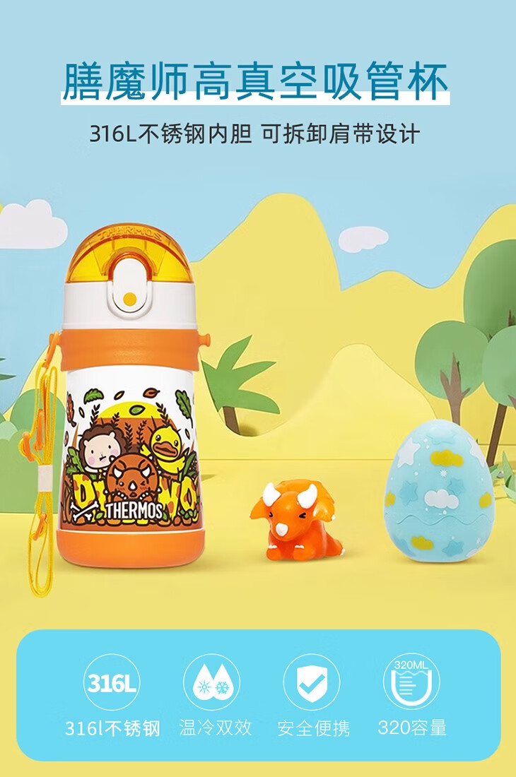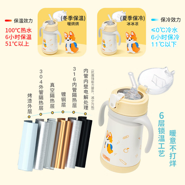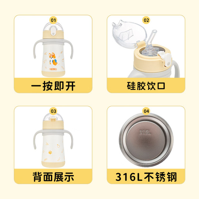 膳魔师(THERMOS)儿童水杯316l不锈钢保温杯宝宝水杯小吸管杯耐磨防摔可斜跨 柯基 320ml(带把手)