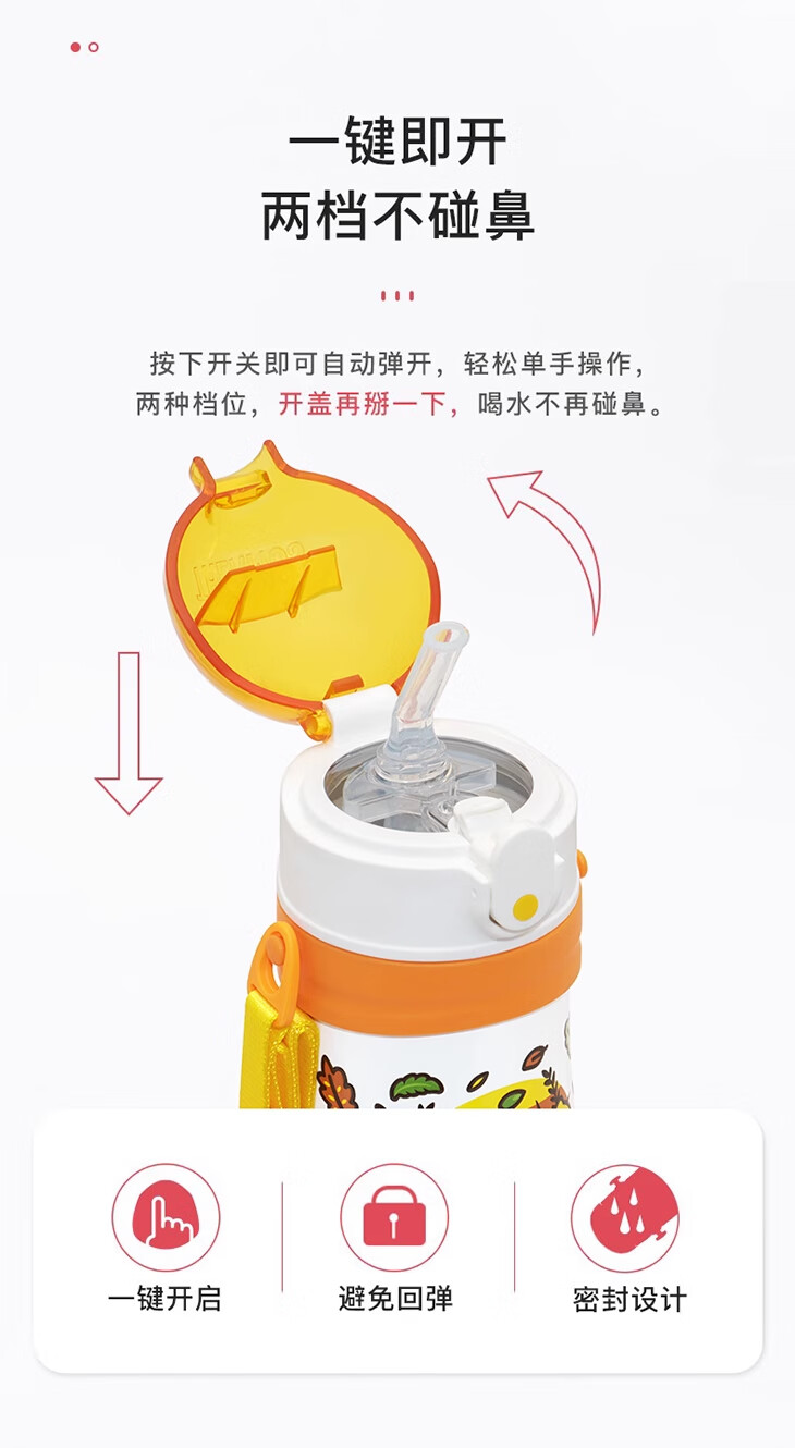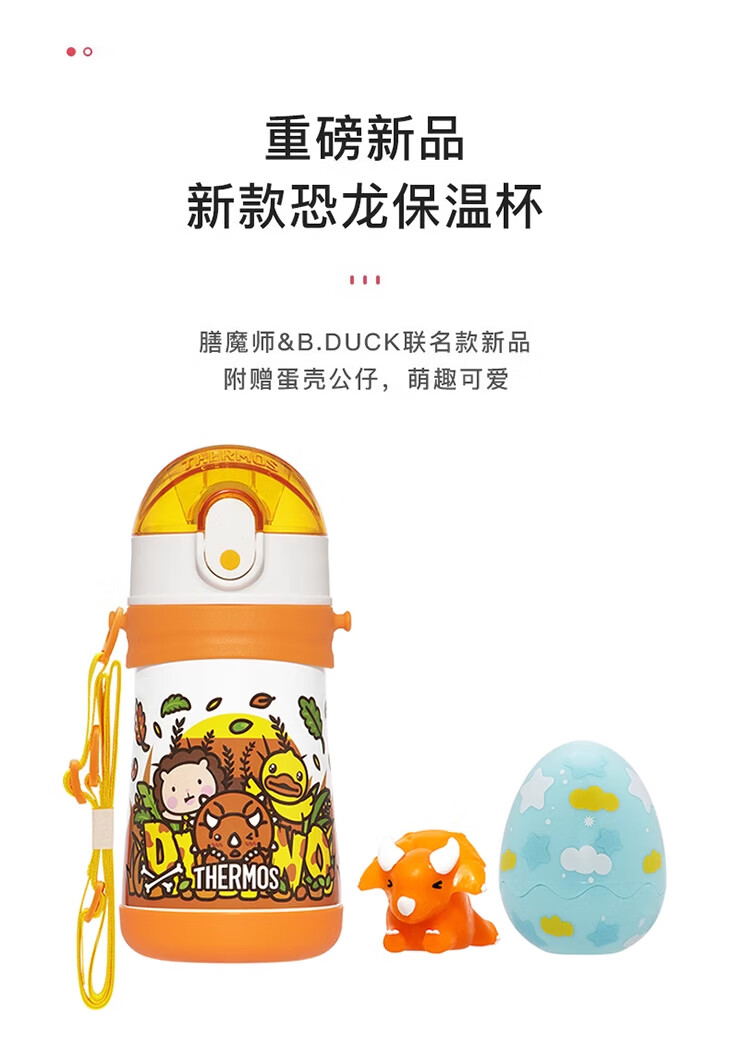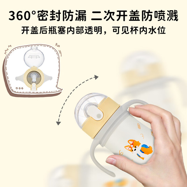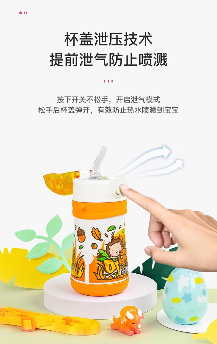 THERMOS 膳魔师 儿童水杯 柯基 320ml(带把手),360°密封防漏,二次开盖防喷溅,开盖后瓶塞内部透明,可见杯内水位。