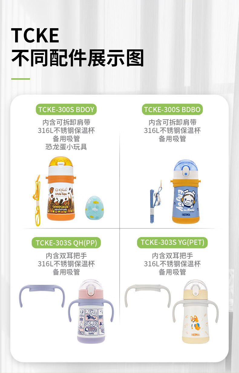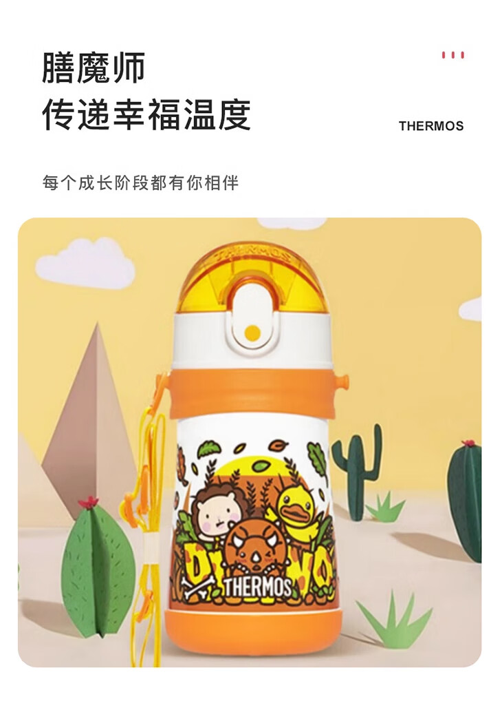 膳魔师儿童保温杯宝宝吸管杯便携式大容量双盖水杯上学喝水直饮杯