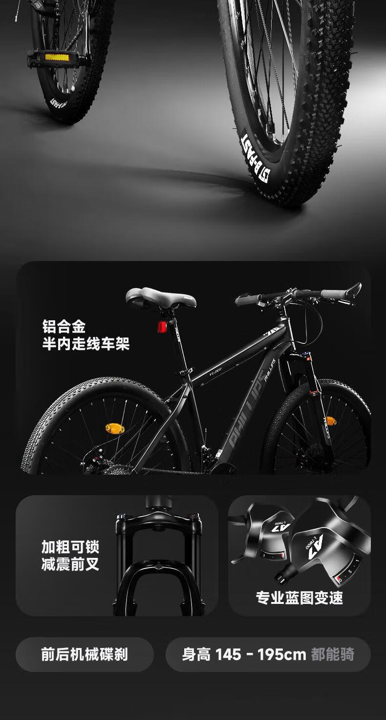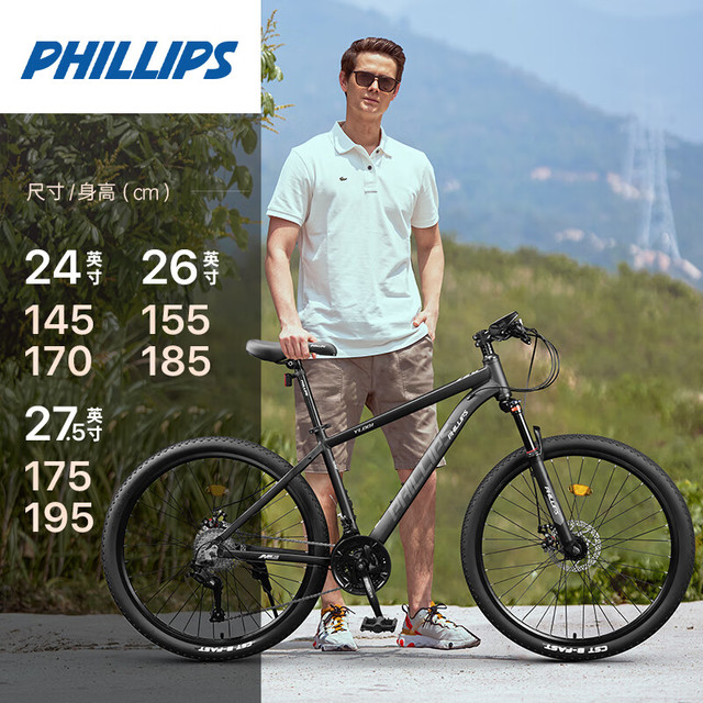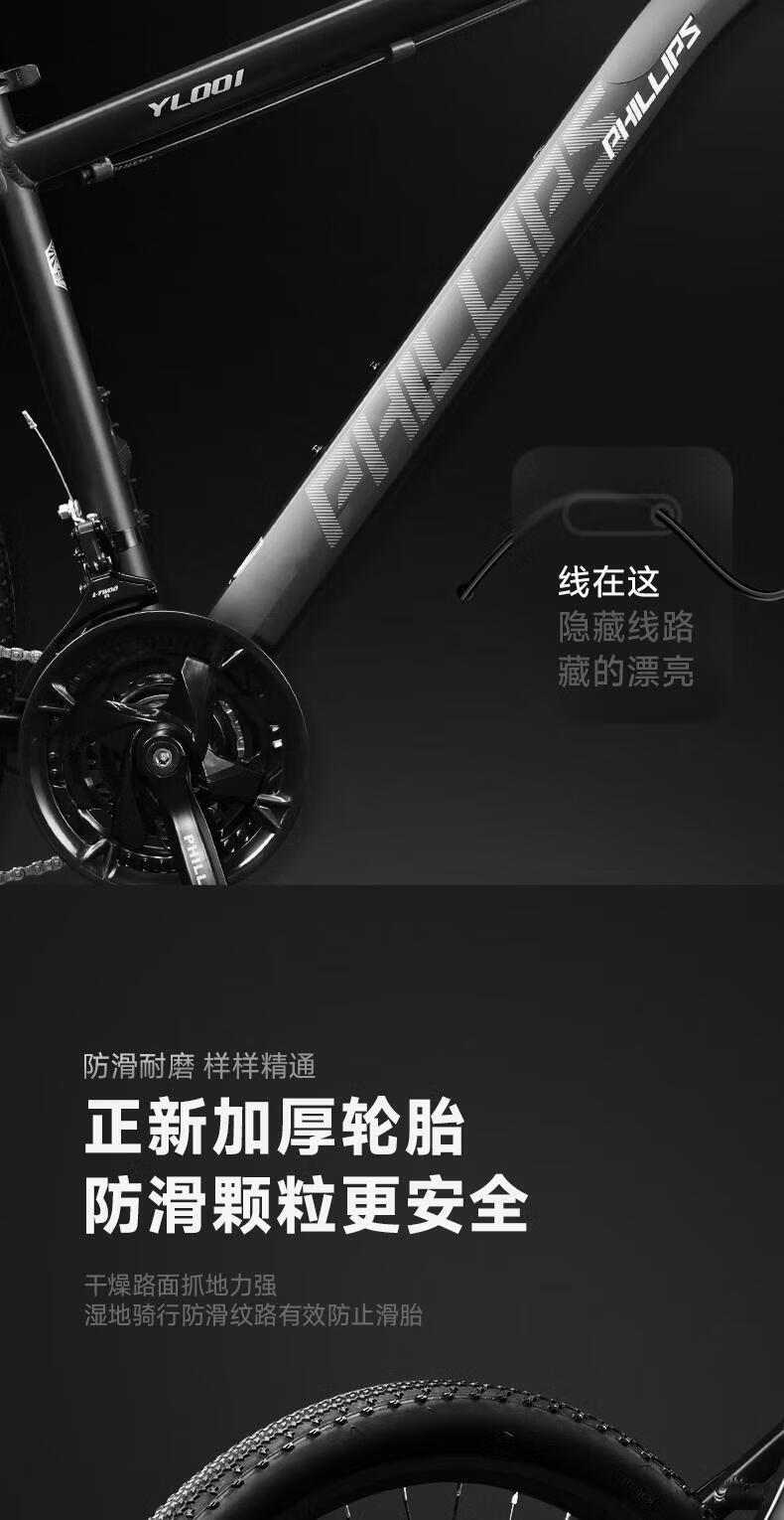 PHILLIPS/菲利普 减震变速 山地自行车 铝合金车架 油碟 26英寸 21速 香槟金-铝合金车架-线碟