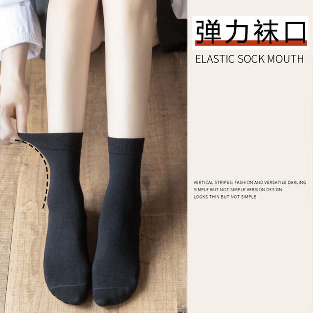 芝麻时光堆堆袜可直100%棉纯棉7a级抗菌 袜子女 全棉中筒抗菌防臭四季秋冬 拍1发6【3黑3白包含共发6双 均码【女】