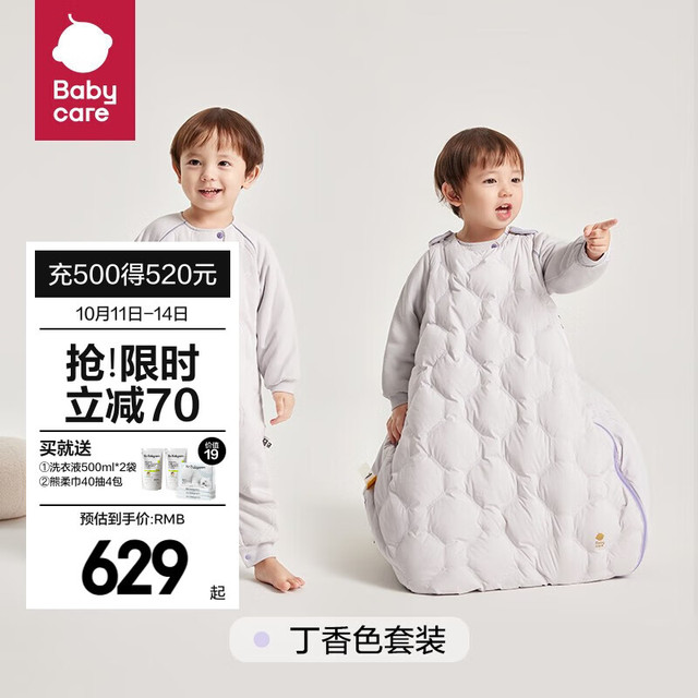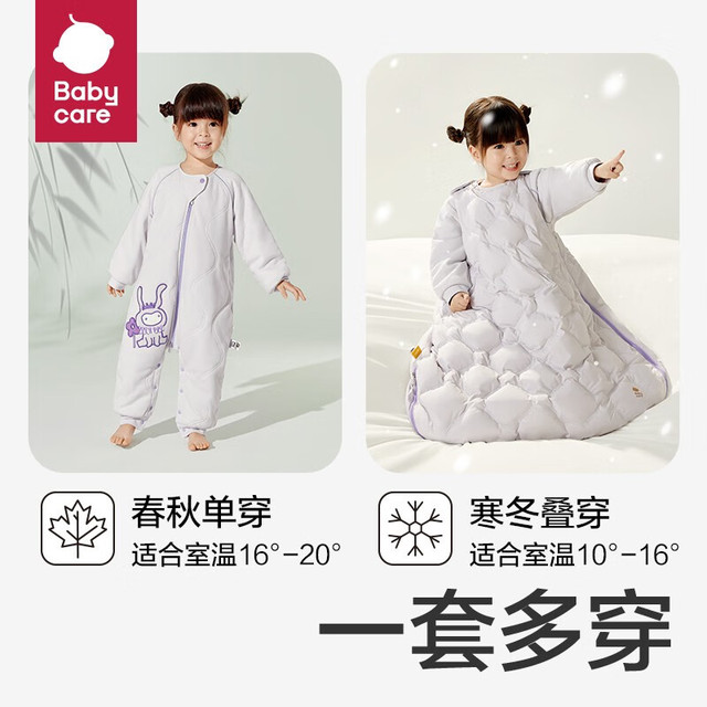 babycare bc babycare婴儿睡袋秋冬款防惊跳羽绒保暖多穿礼盒儿童防踢被子 丁香色 70cm