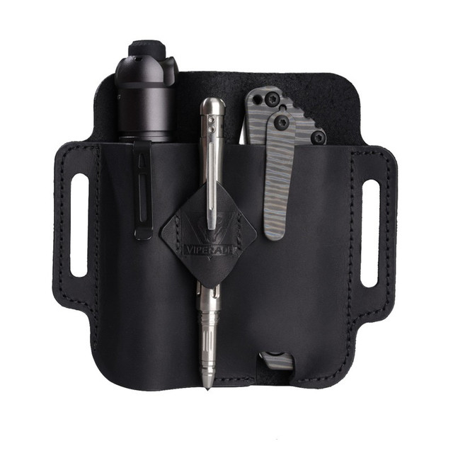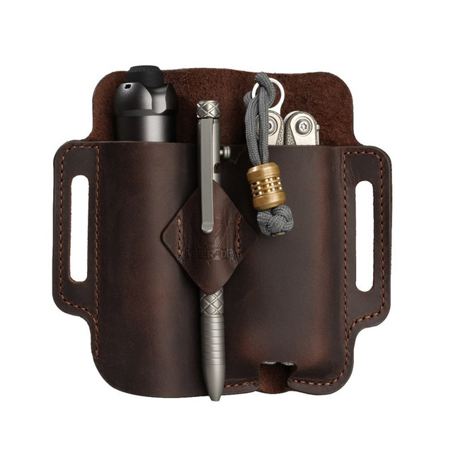 VIPERADE蝰蛇 PJ19疯马皮手工皮具EDC收纳工具套 双鞘手电皮套刀具套 棕色