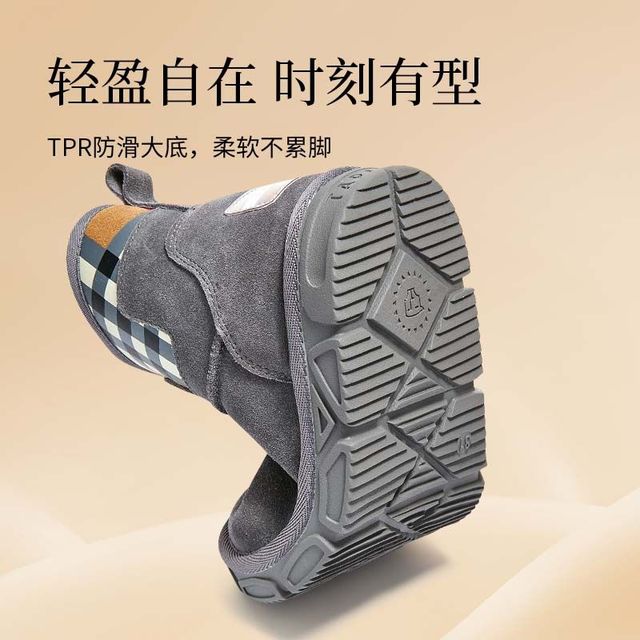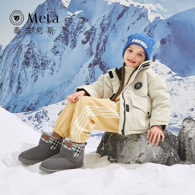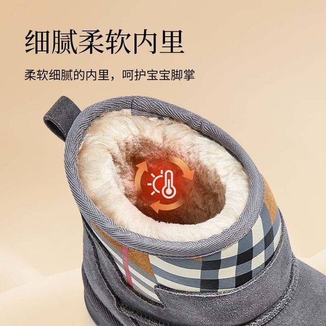 泰兰尼斯冬季女童雪地靴男童加绒加厚灰色靴子轻便百搭宝宝鞋棉靴