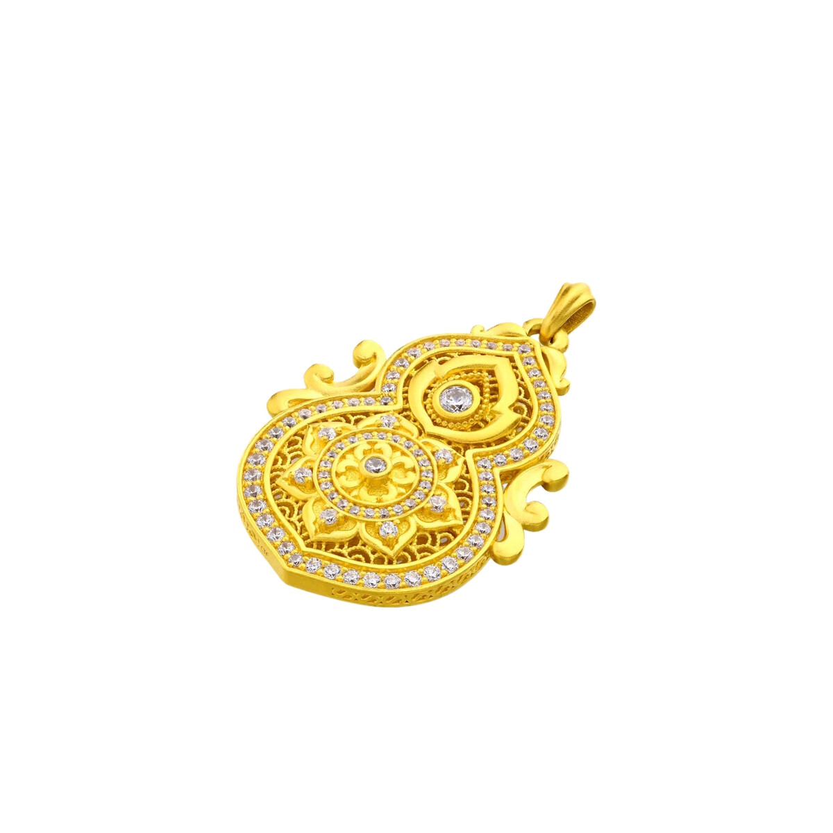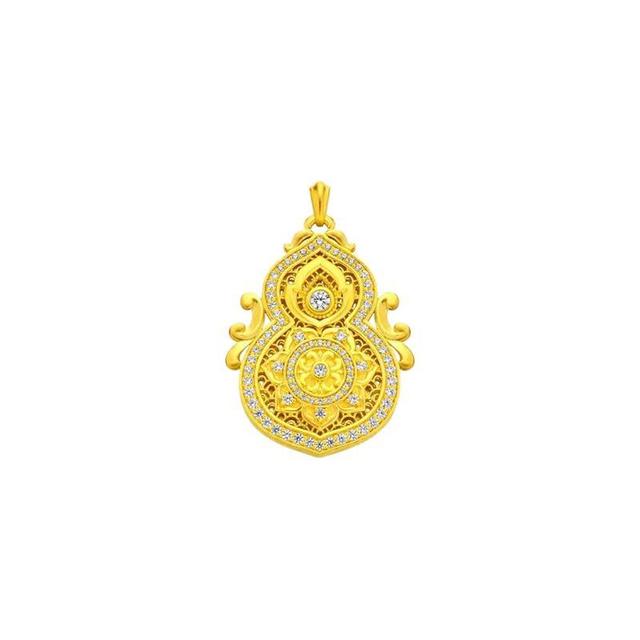 周大福品牌推出的人生四美葫芦黄金钻石吊坠,采用高纯度黄金材质,结合精湛工艺,葫芦造型寓意吉祥,镶嵌钻石增添璀璨光芒。设计融合传统与现代,适合日常佩戴或特殊场合,展现独特魅力。