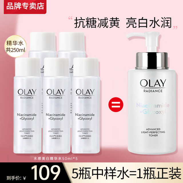 玉兰油(OLAY)小白瓶抗糖美白水烟酰胺爽肤化妆护肤品减黄提亮补水保湿女友 【减黄提亮】美白水共50ml*5