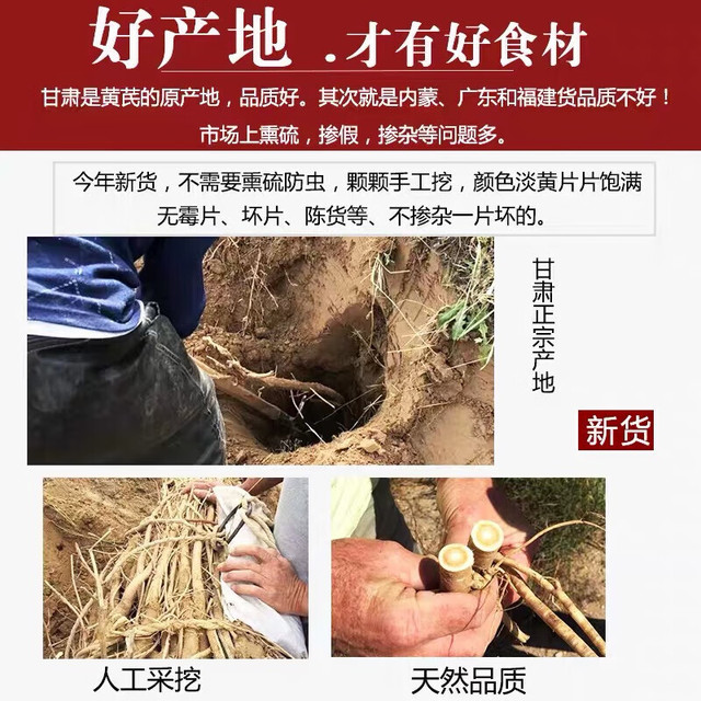 黄芪 甘肃陇西野生黄芪片特级无硫斜切片煲汤泡茶泡水中药材滋补养生茶泡酒干黄芪 【装】新切黄芪50g