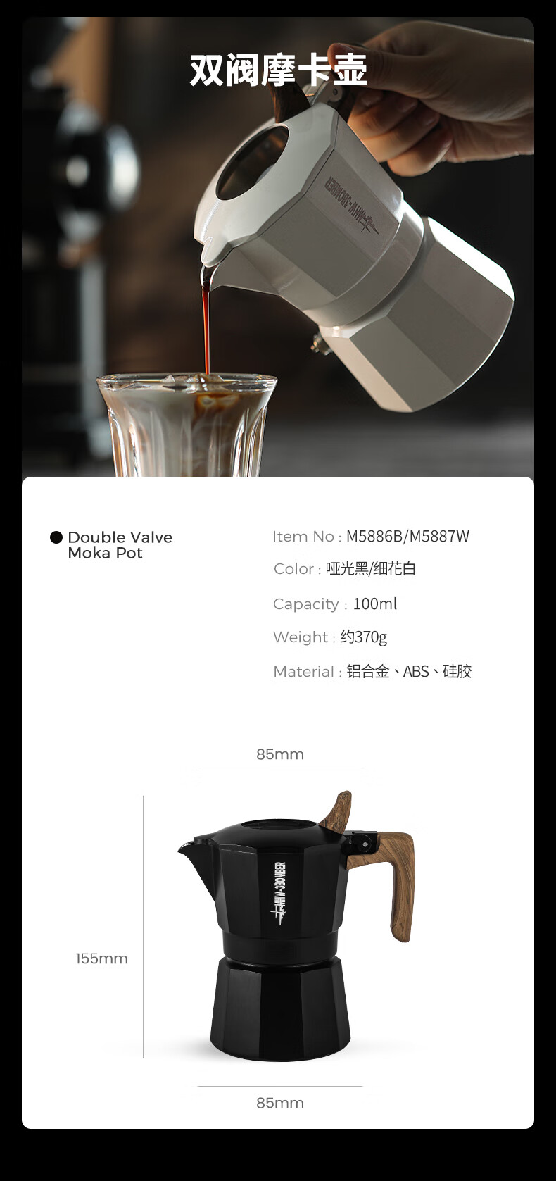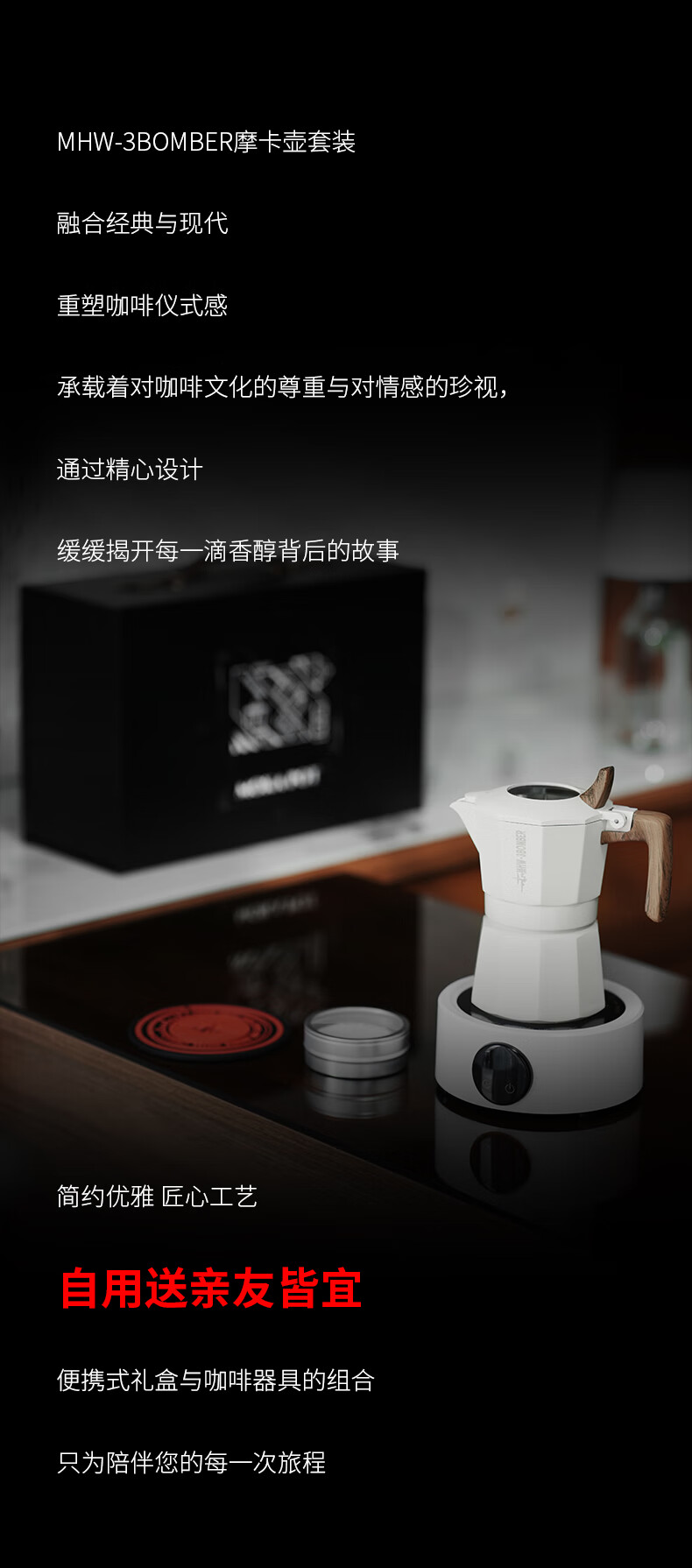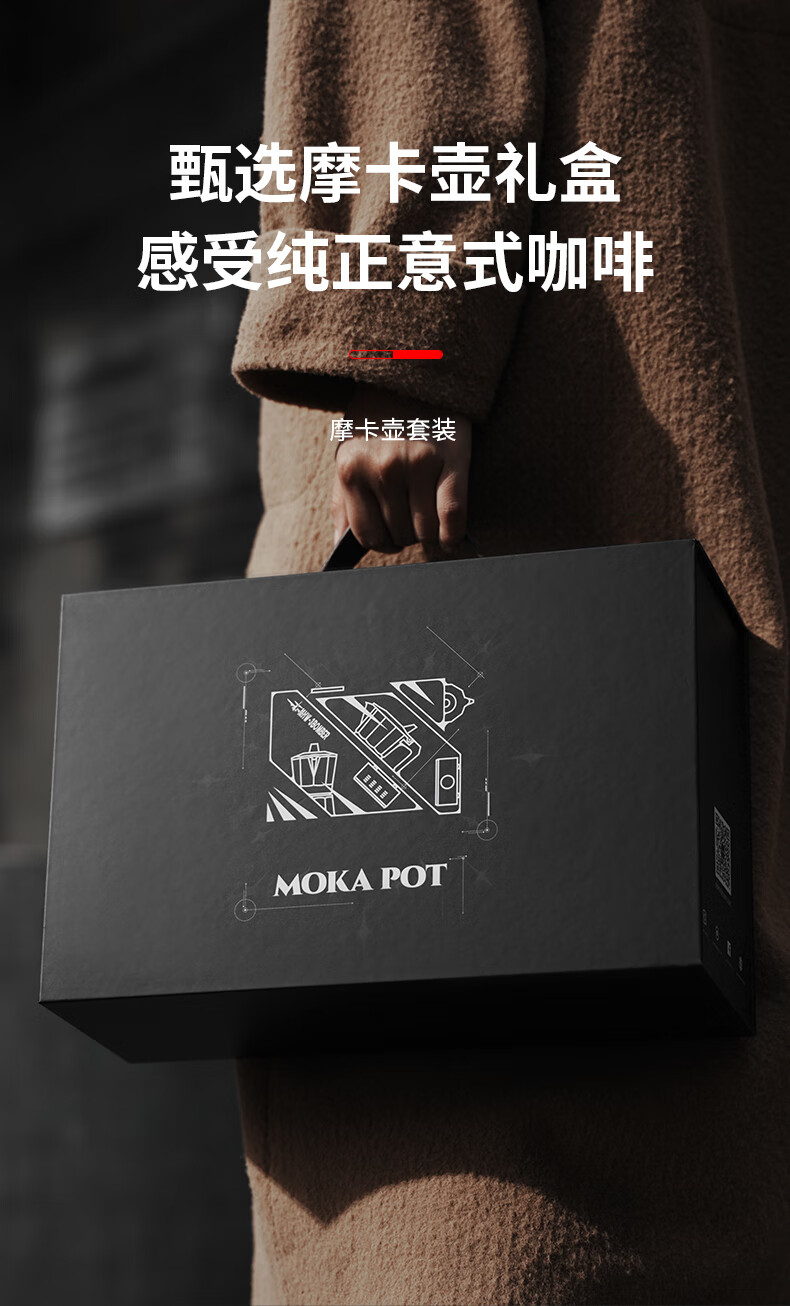 MHW-3BOMBER轰炸机双阀摩卡壶 意式浓缩咖啡壶家用煮咖啡户外器具 【新年】摩卡壶礼盒-黑色