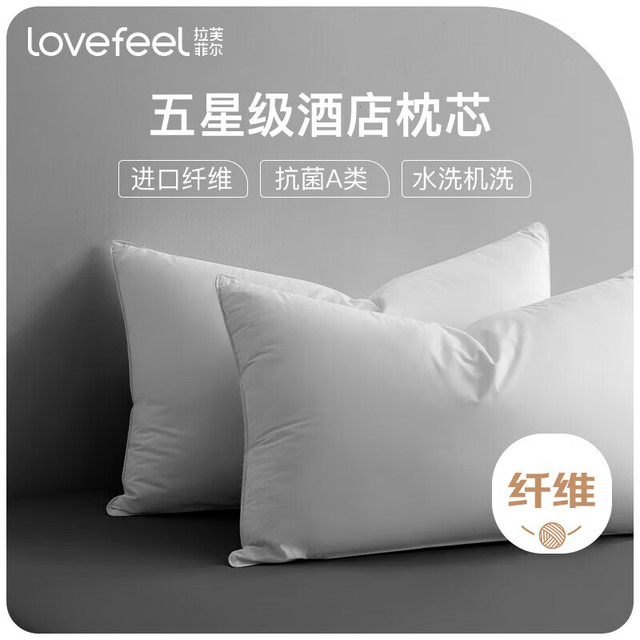 拉芙菲尔五星级酒店枕头抑菌可水洗成人家用高弹枕芯双人中枕对装 A类抗菌枕(中枕)对装
