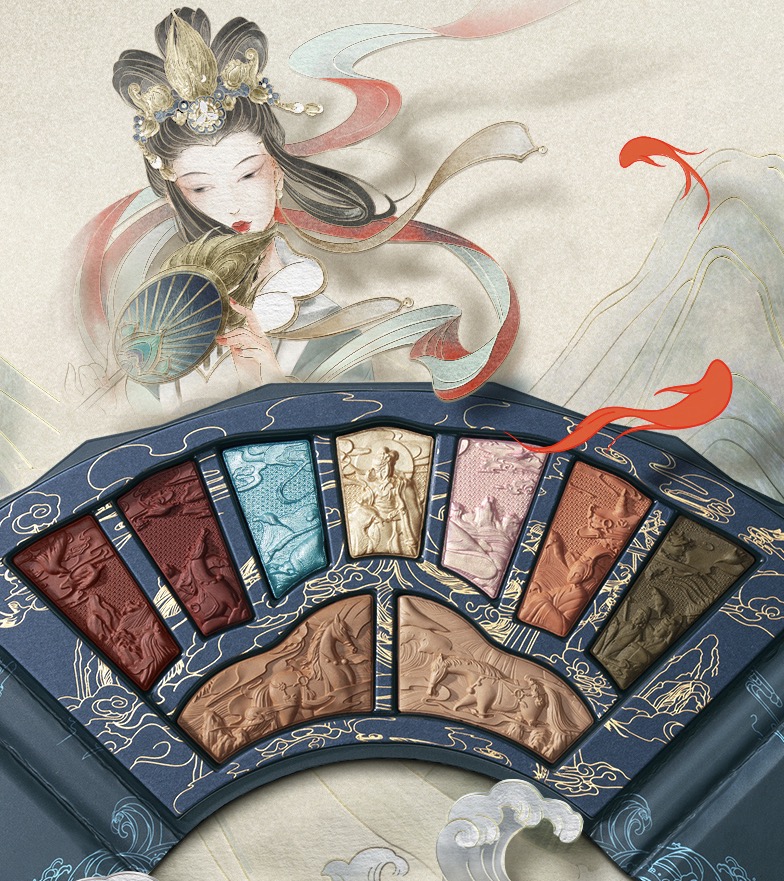 这次花西子以“洛神赋”灵感,推出2021年限定彩妆盘——「牡丹镂月浮雕彩妆多色盘」