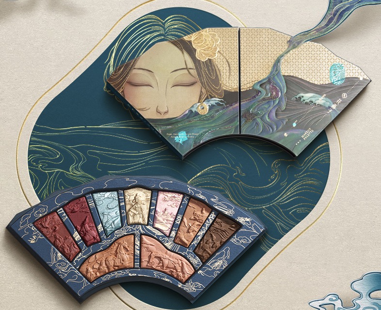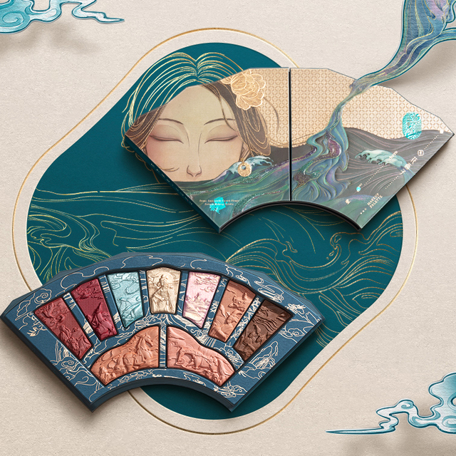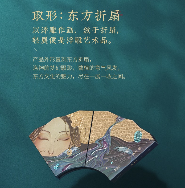 把洛神的美与意,以妆的形式收录在古代文人执手把玩折扇。古人通过文字以婉转的方式表现幻象中的洛神;如今我们通过色彩、纹样的方式向世人表达对洛神的赞美与爱意。