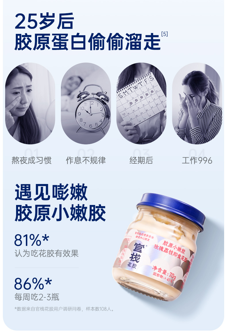 官栈 胶原花胶即食孕妇月子滋补天然胶原蛋白70g*6