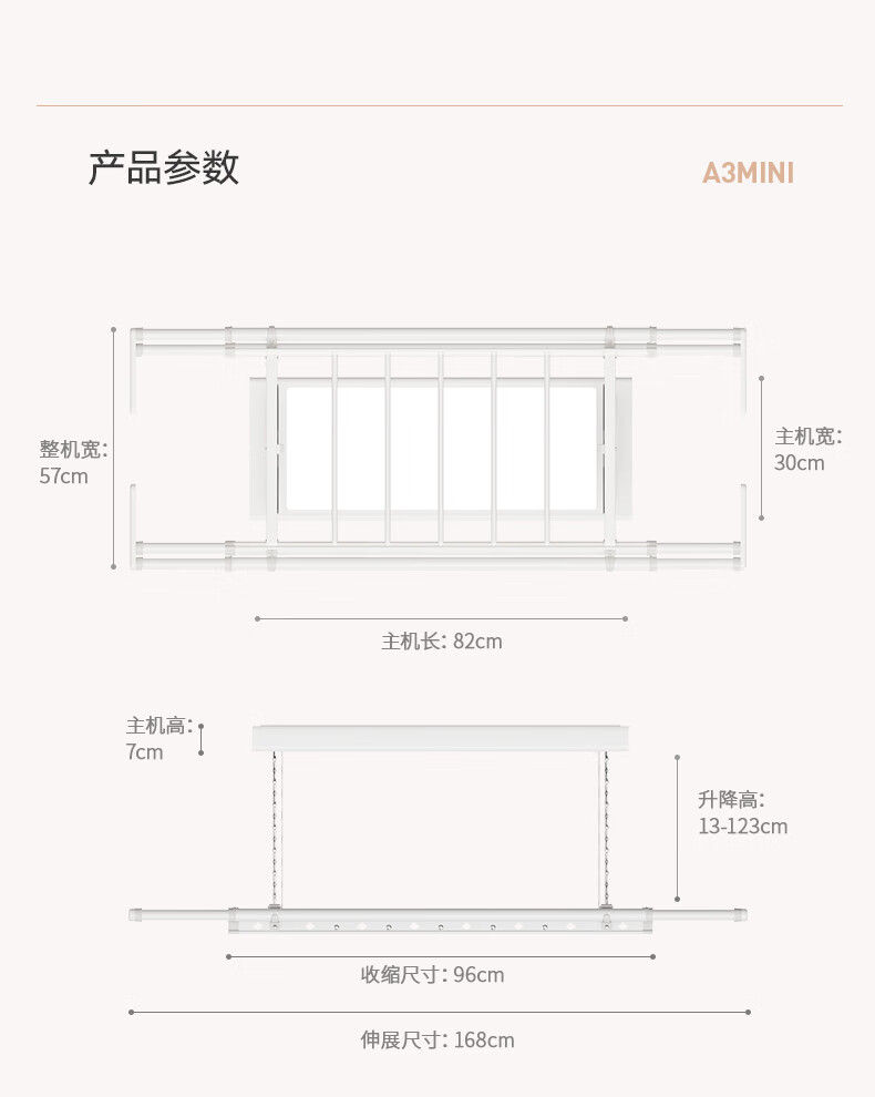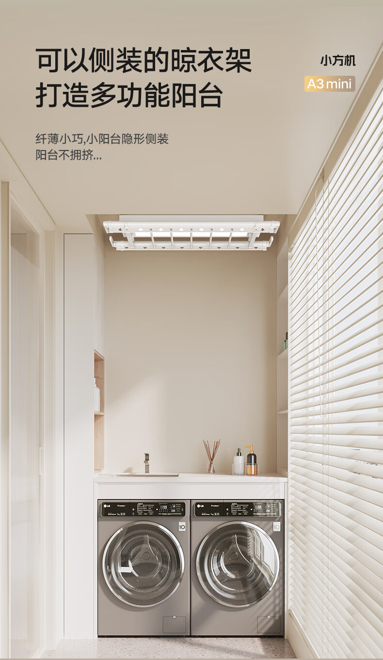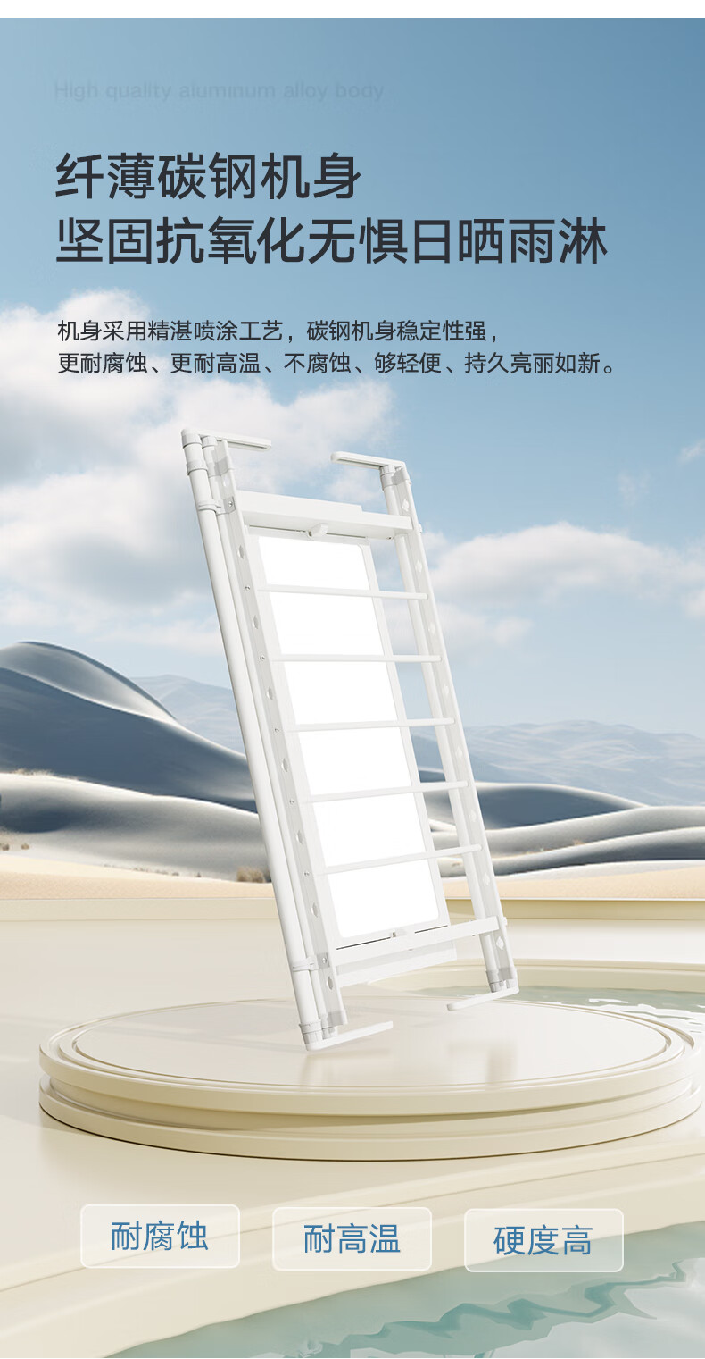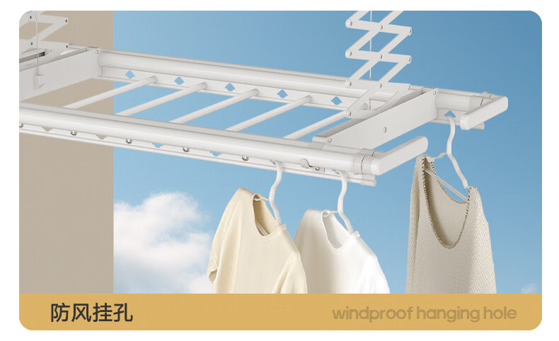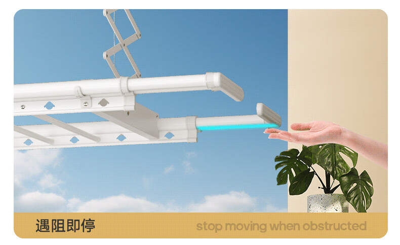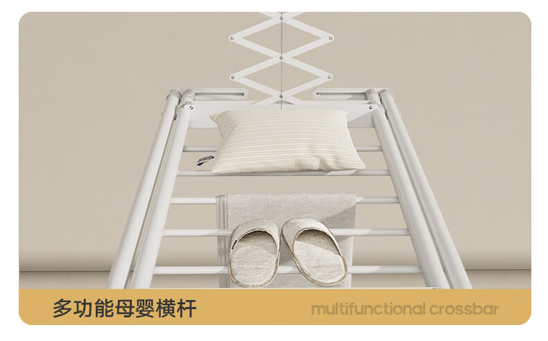 金贵夫人 电动晾衣架 选材环保,制作精细,一键升降,UV杀菌,承重能力强,升级多功能大量晒,4根晾衣杆+26个挂孔+2根晾晒横杄+2组母婴夹。LED大面屏照亮阳台、低耗能晚间晾晒也够亮。双侧强力消毒灯,UV智能母婴级杀菌,30min定时设置,99.99%有效除螨、细菌、病毒等微生物。遇阻即停,优选直流电机具有低噪音运行、过压、过载、过热等保护功能。采用第八代智能芯片,安全晾衣,智享生活,体验晾晒黑科技。智能采集环境信息与数据,主动监测环境分析环境变化,自动开启或关闭相应程序,健康护衣,智能定时程序,省心省力。