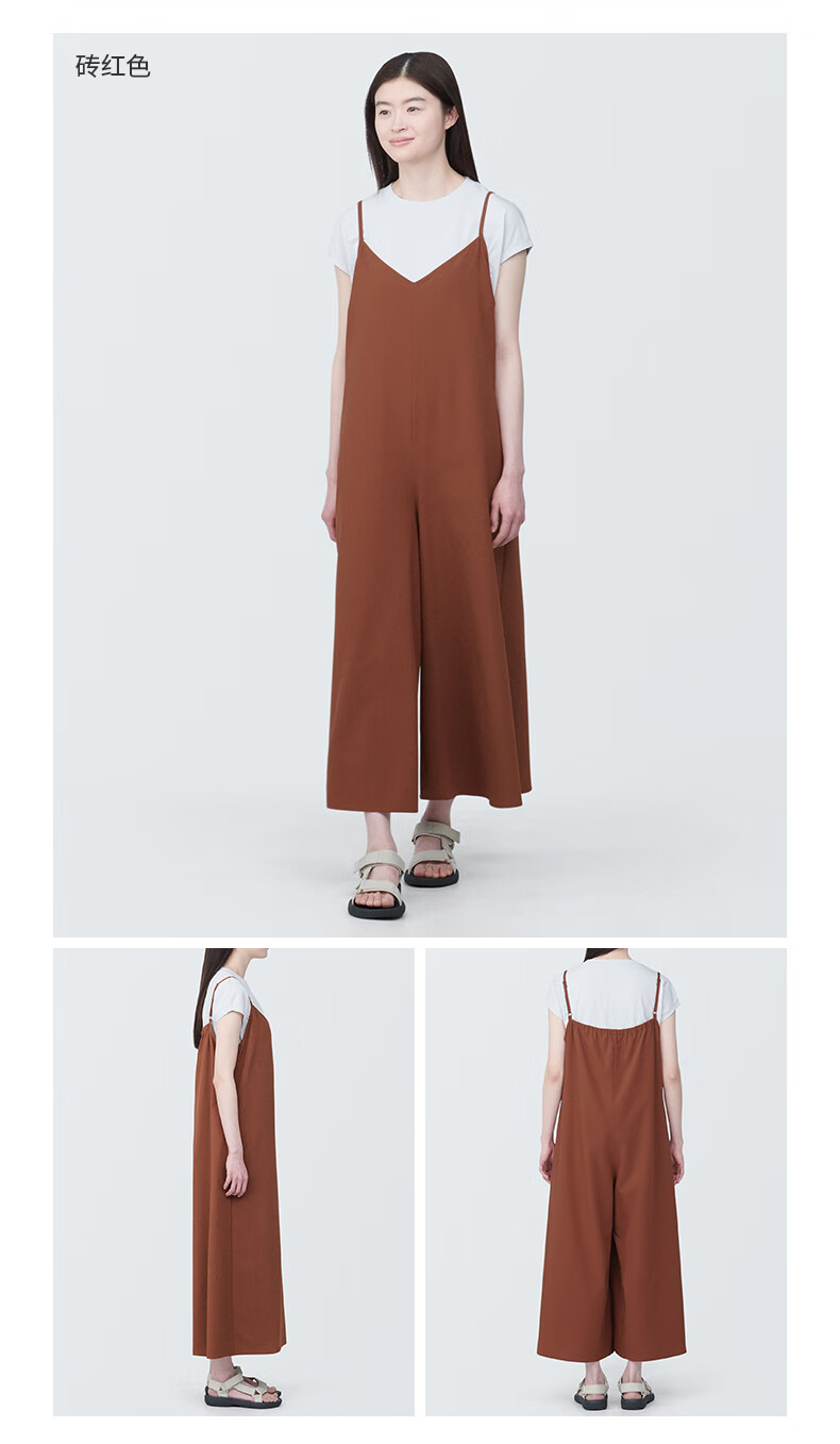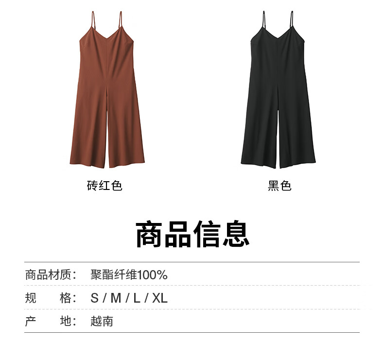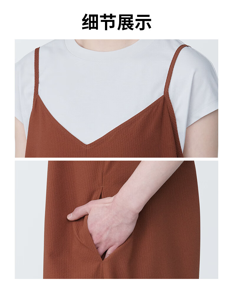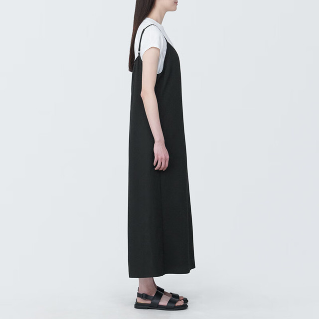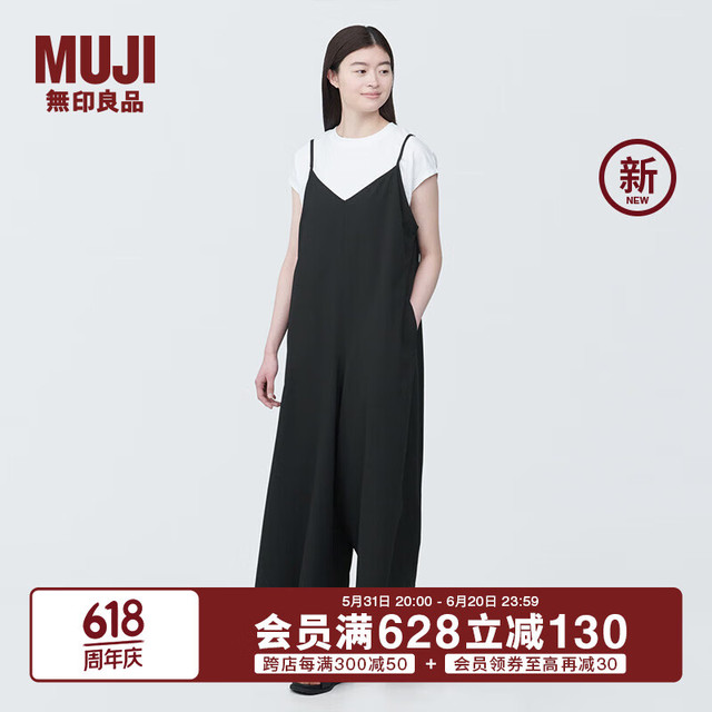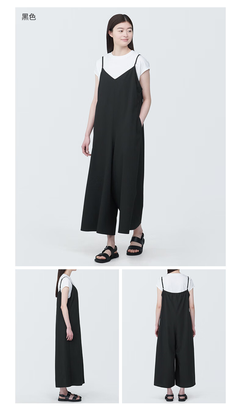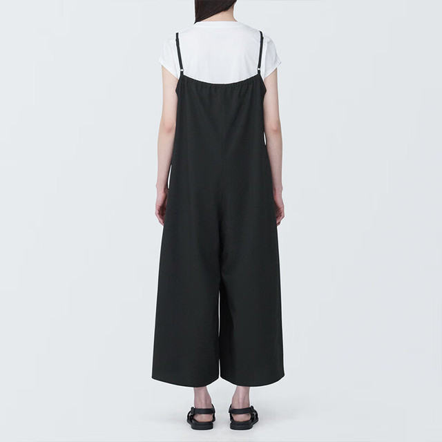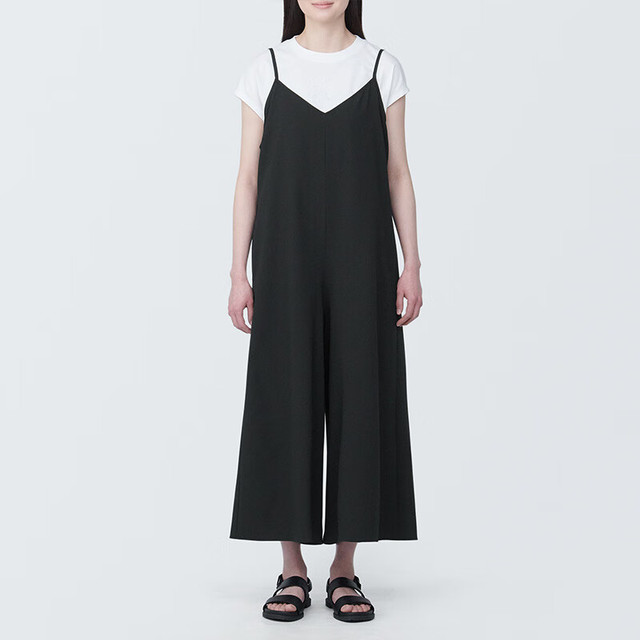 無印良品 MUJI(無印良品 ) 女式 易干弹力泡泡纱 背带裤 女装夏季连体裤吊带新品BC2JRA4S 黑色 黑色 XL 165/92A