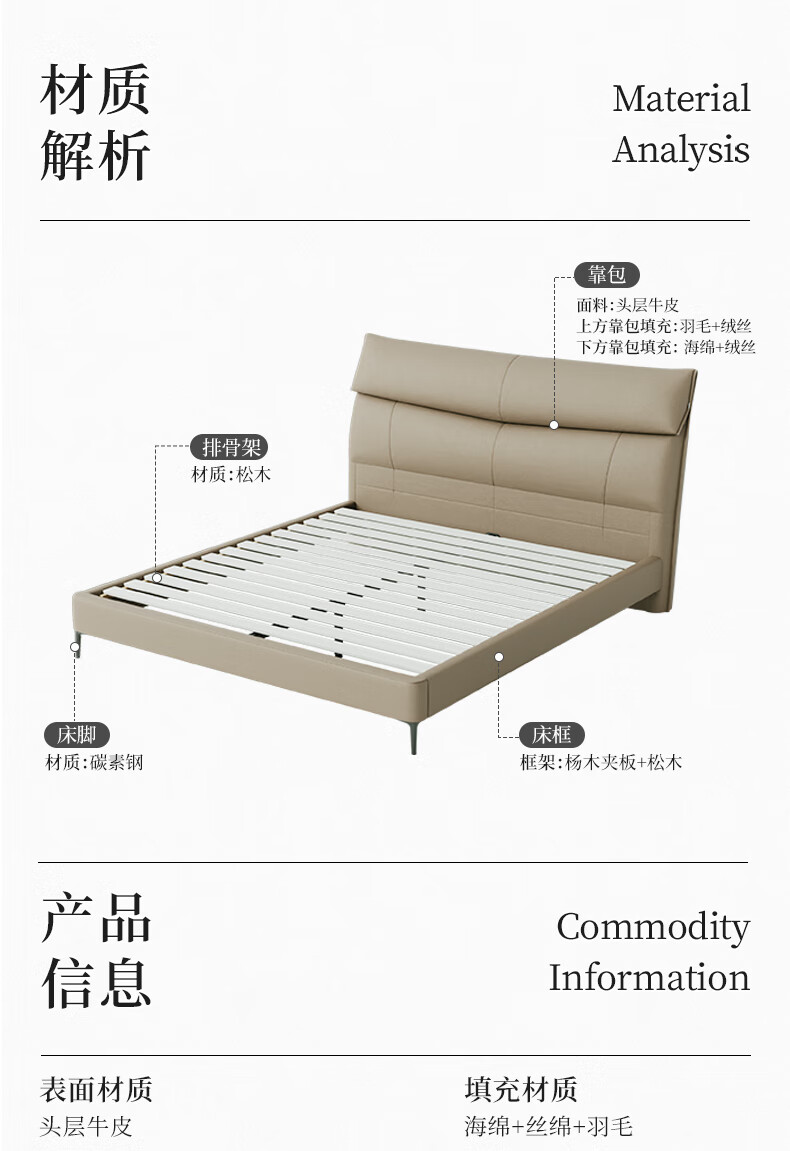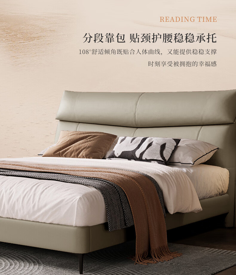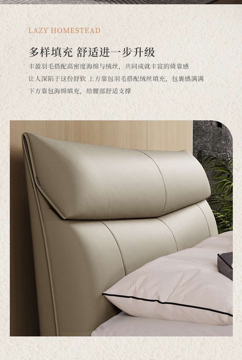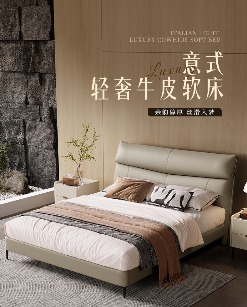 M1093 +8039【拿铁灰】皮床1.8m+软硬适中+20-25cm(含)