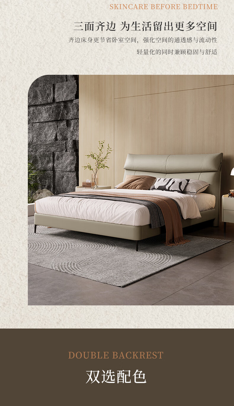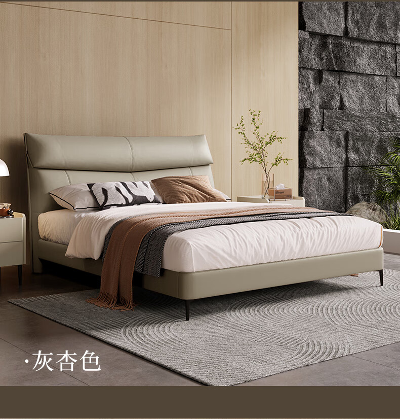 M1093 +8237【灰杏色】皮床1.8m+软硬适中
