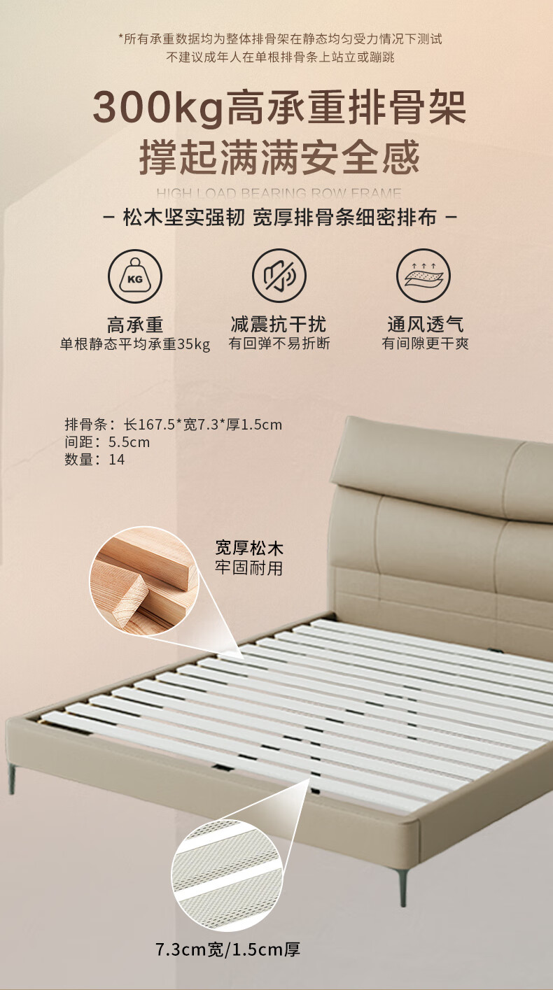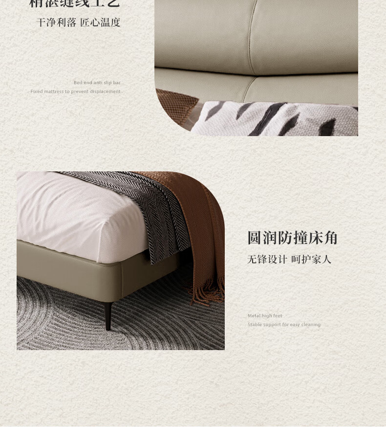 M1093 +8039【拿铁灰】皮床1.5m+软硬适中