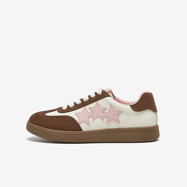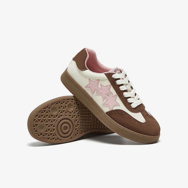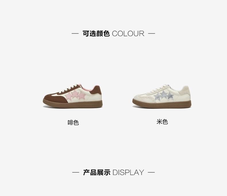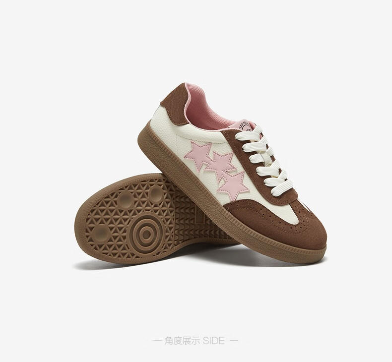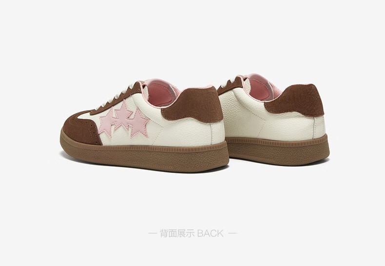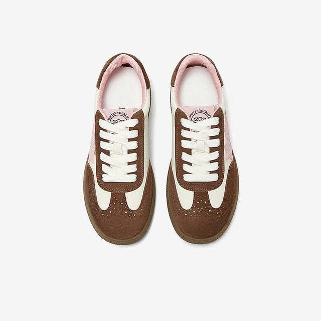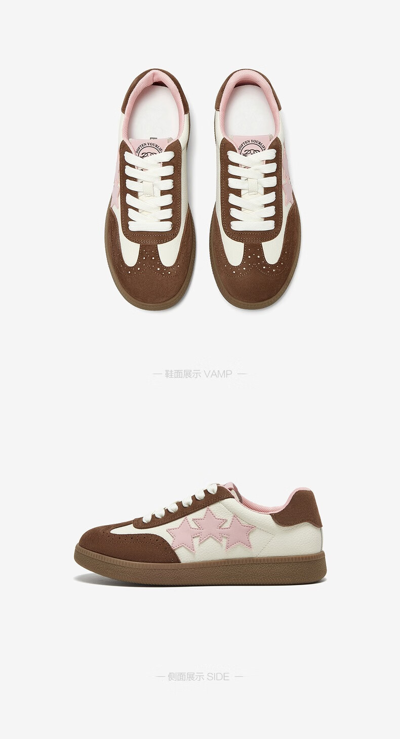 百思图25春时尚复古运动德训鞋平跟圆头女休闲鞋BG371AM5 38 啡色