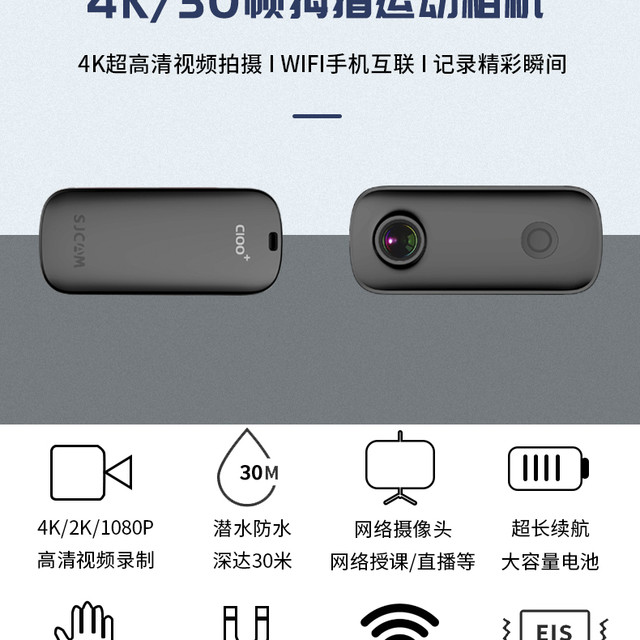 SJCAM 速影C100运动相机摩托车骑行拇指记录仪4K高清摄像360度全景