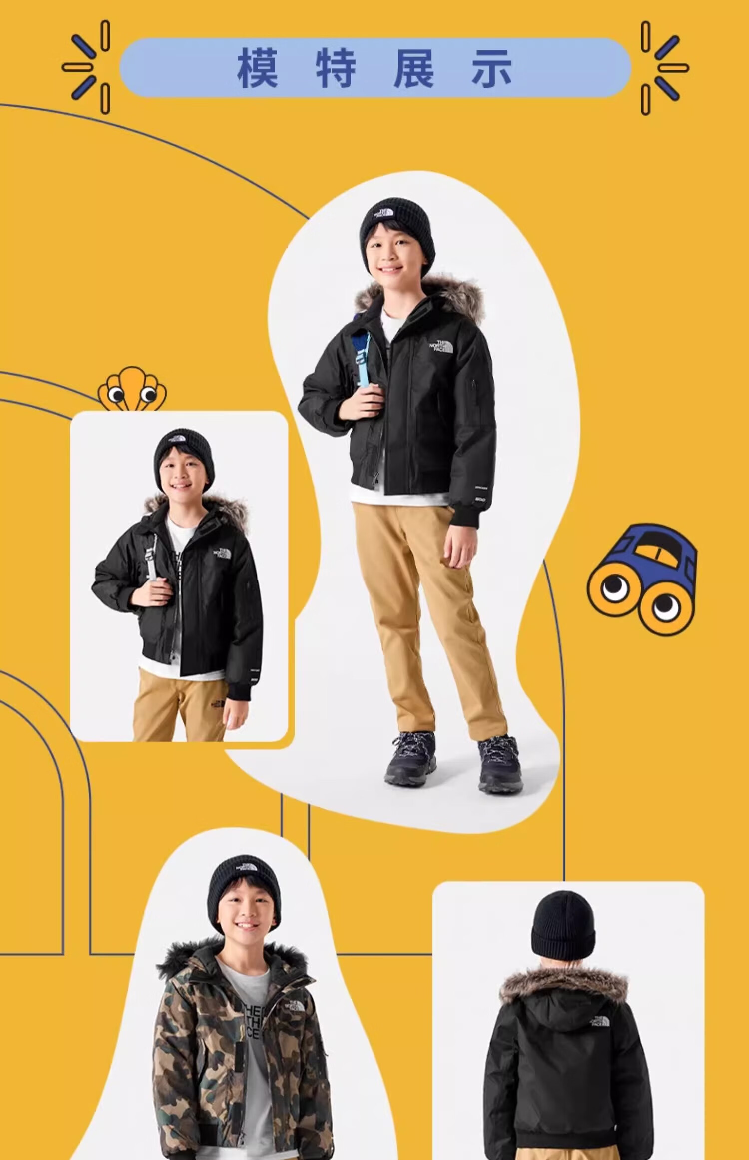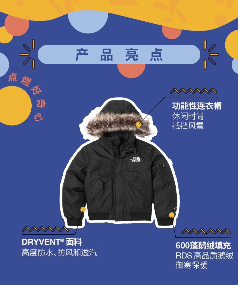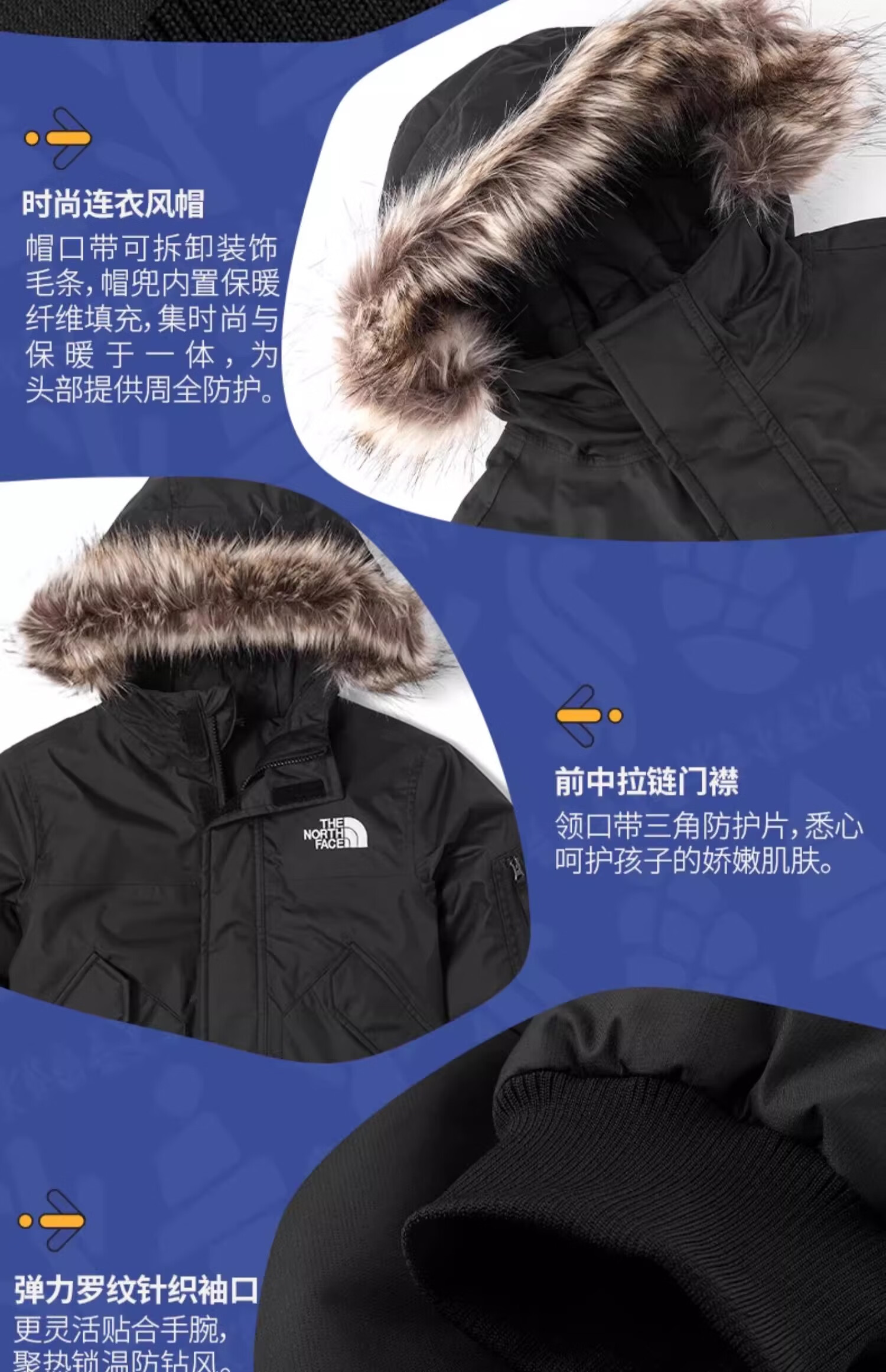 THE NORTH FACE北面童装羽绒服儿童男防水保暖冬装户外外套鹅绒|82XT 充绒量约123g JK3/黑色 120cm XS(120/60)充绒量约71g