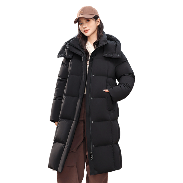 雪中飞新款中长款可拆卸帽保暖羽绒服女时尚简约休闲舒适 黑色|8056 S /160/84A
