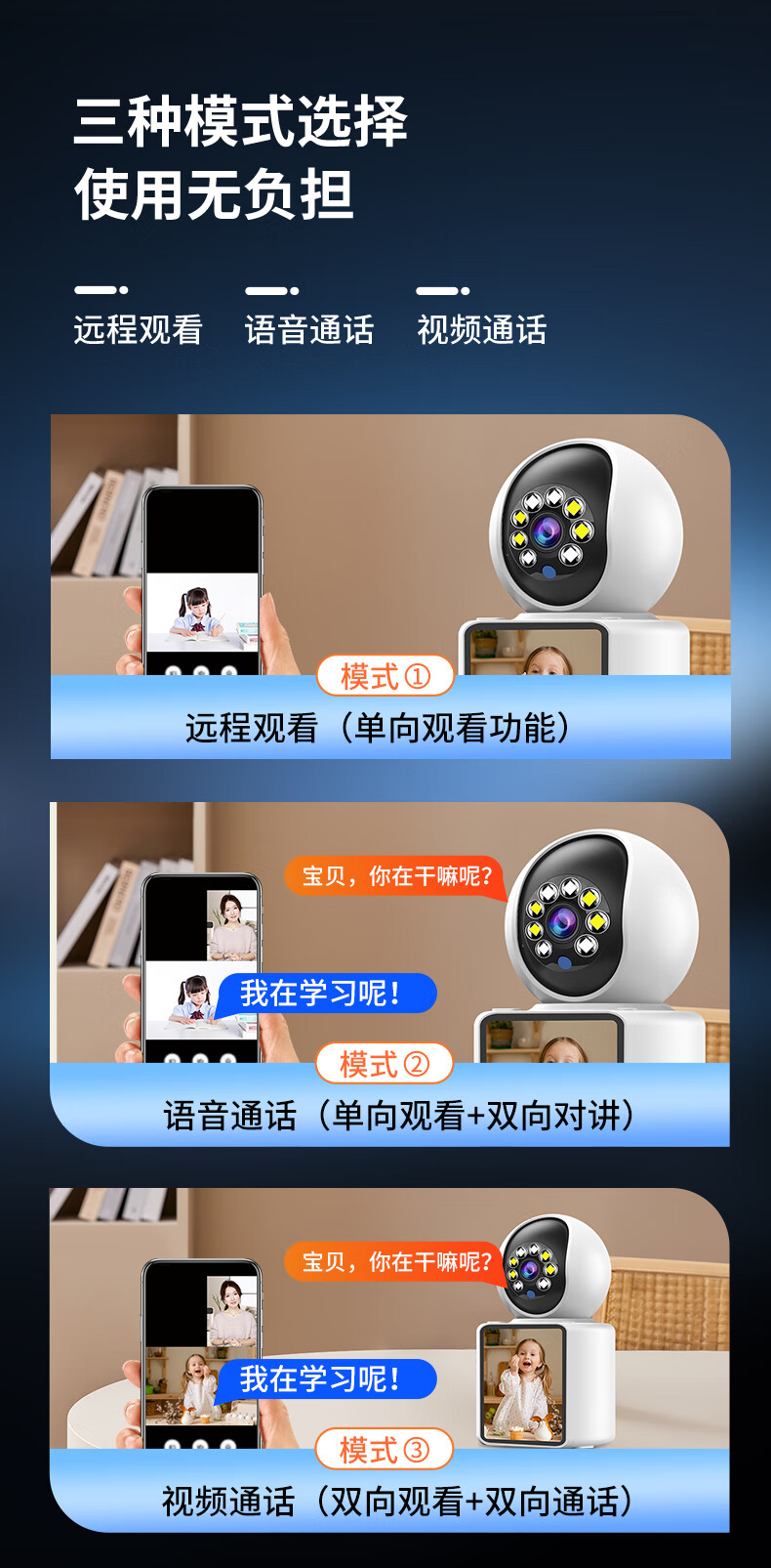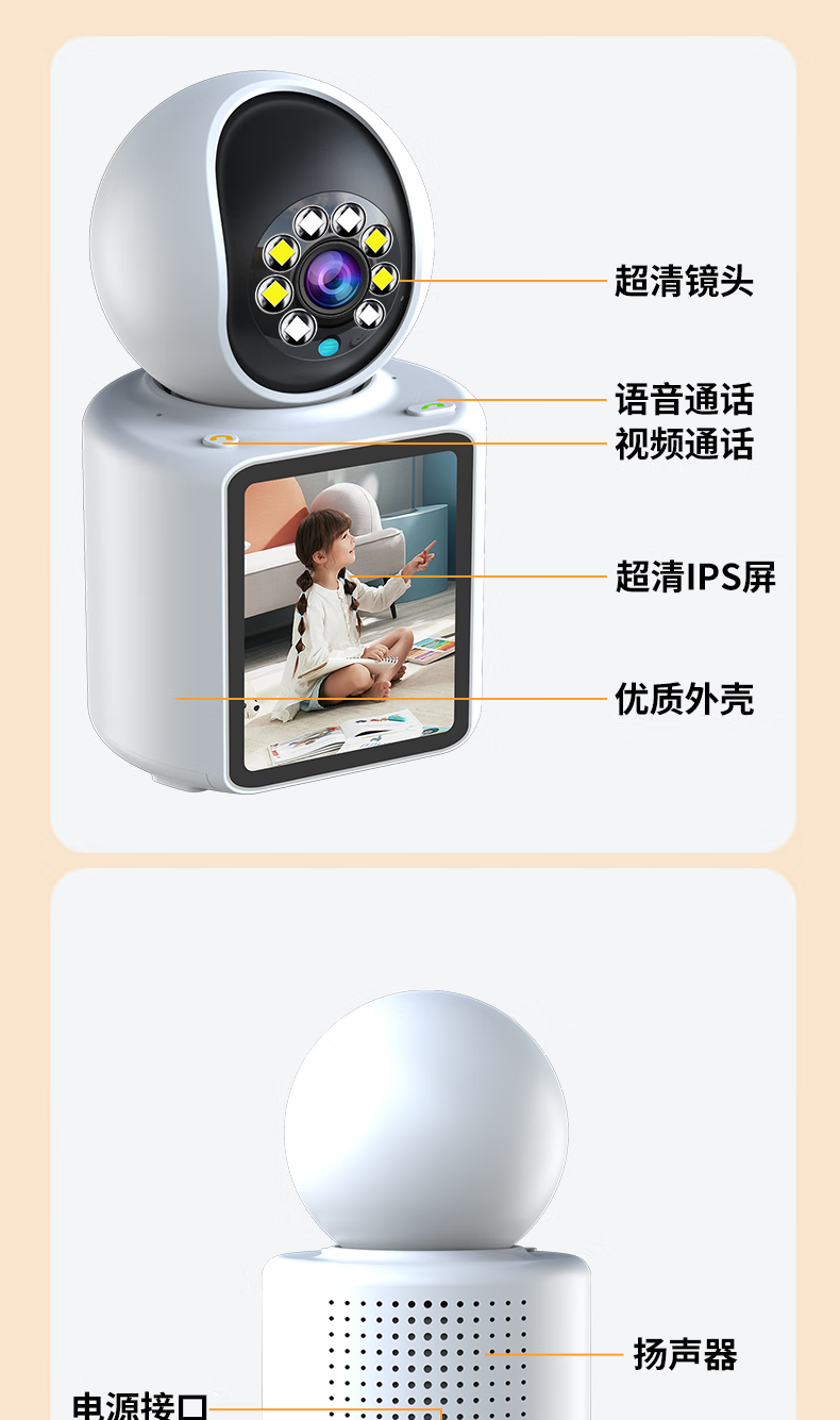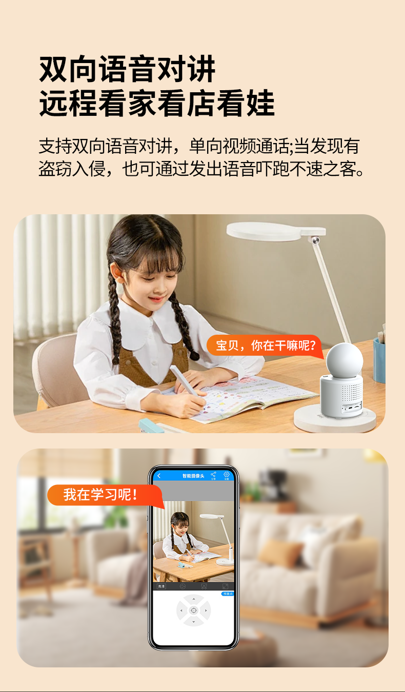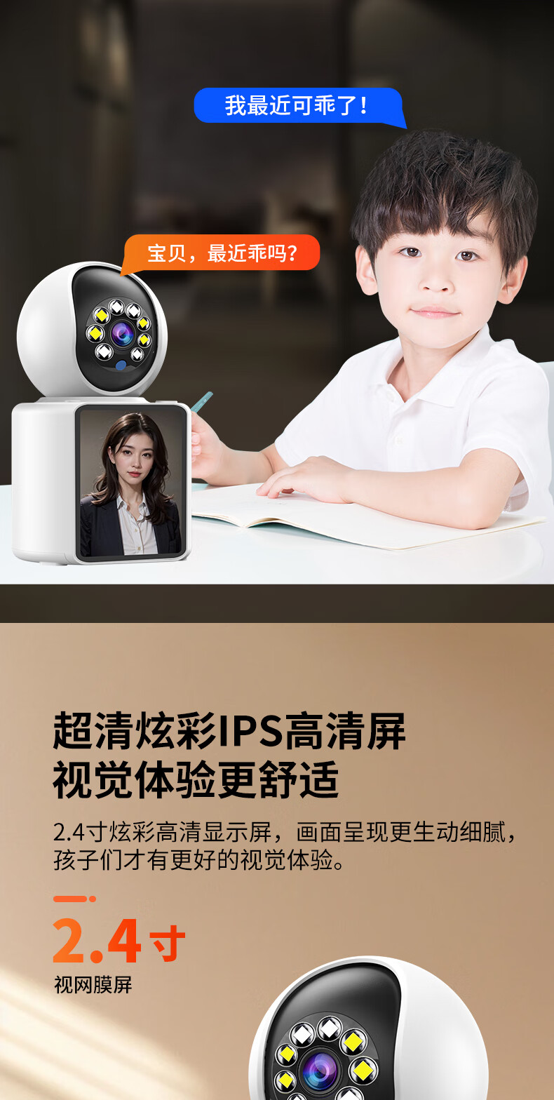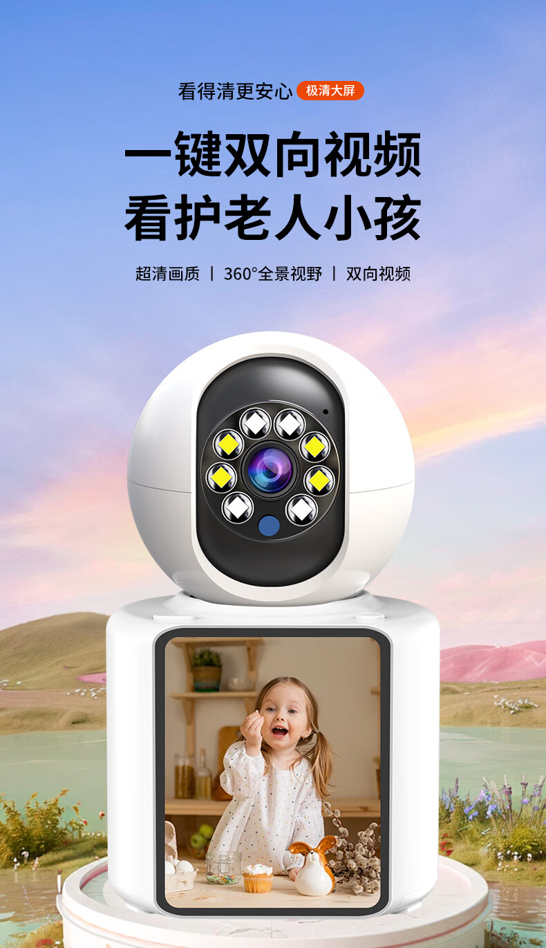 视正浩双向可视频通话摄像头家用手机远程监控高清室内无线监控器360度无死角带夜视全景家庭语音对话 【WIFI版】双向视频通话+128G卡