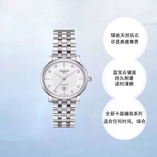 这款TISSOT 天梭 卡森系列 T122.207.11.036.00 女士自动机械手表,采用瑞士制造EAT机芯,搭配不锈钢表壳和表带,镂空底盖设计,整体设计简洁耐看。表壳直径为30mm,50m防水。