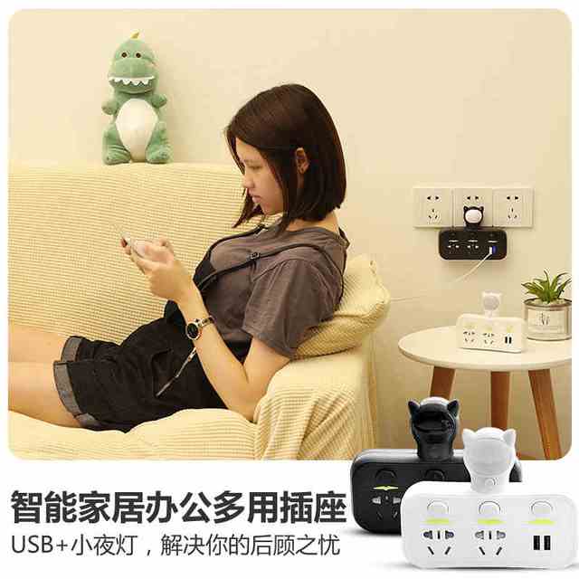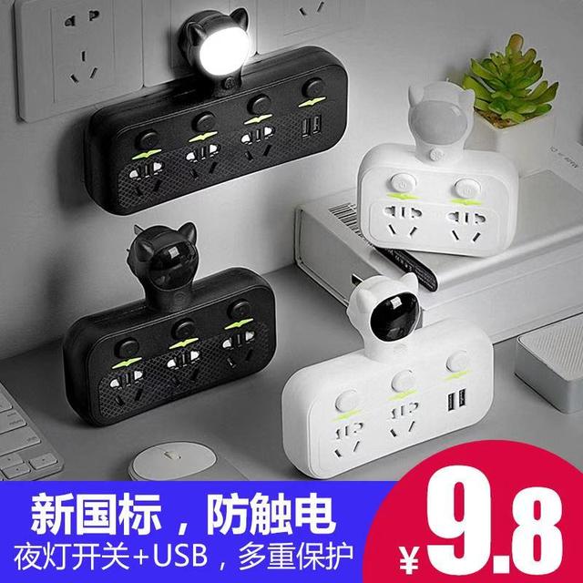 汉楚 家用插座转换器 带线插座(7孔白黑1米)