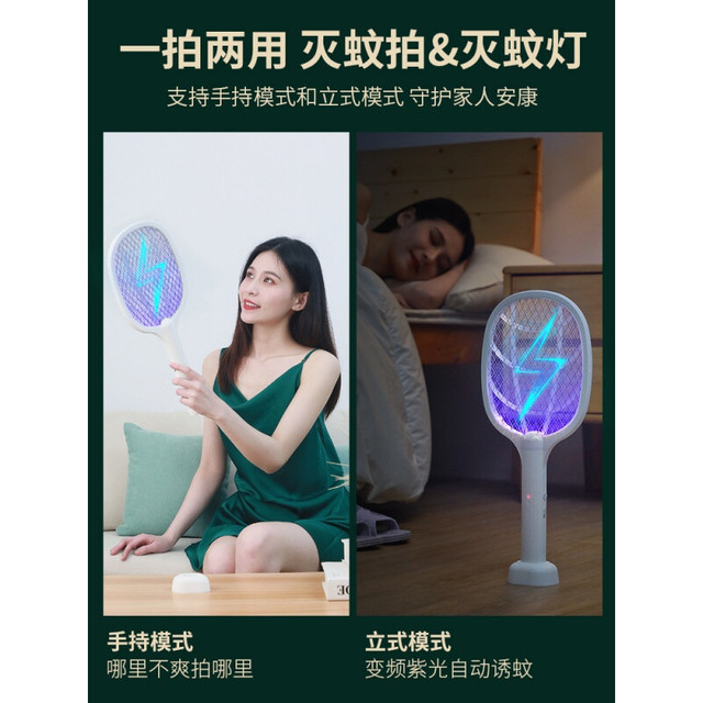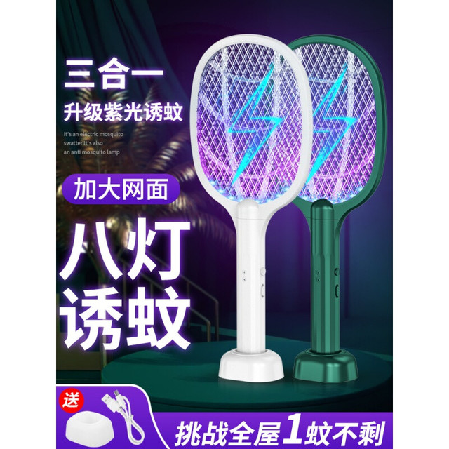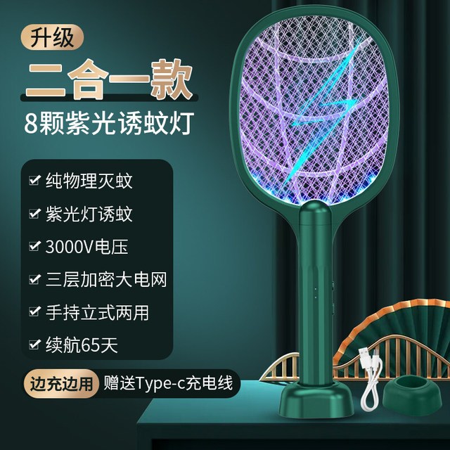 MINPIE 充电式电蚊拍家用灭蚊神器二合一锂电池 旗舰款【八灯自动诱蚊+Type-c快充】-优雅绿