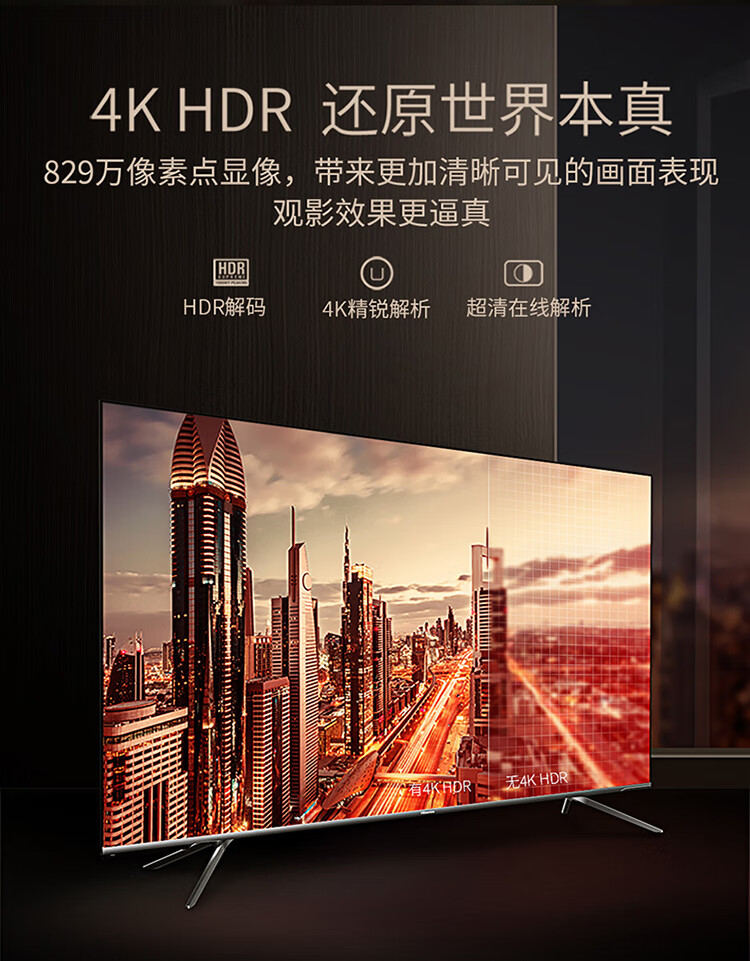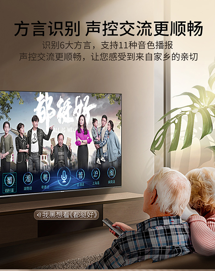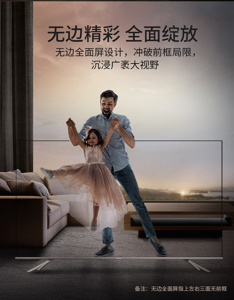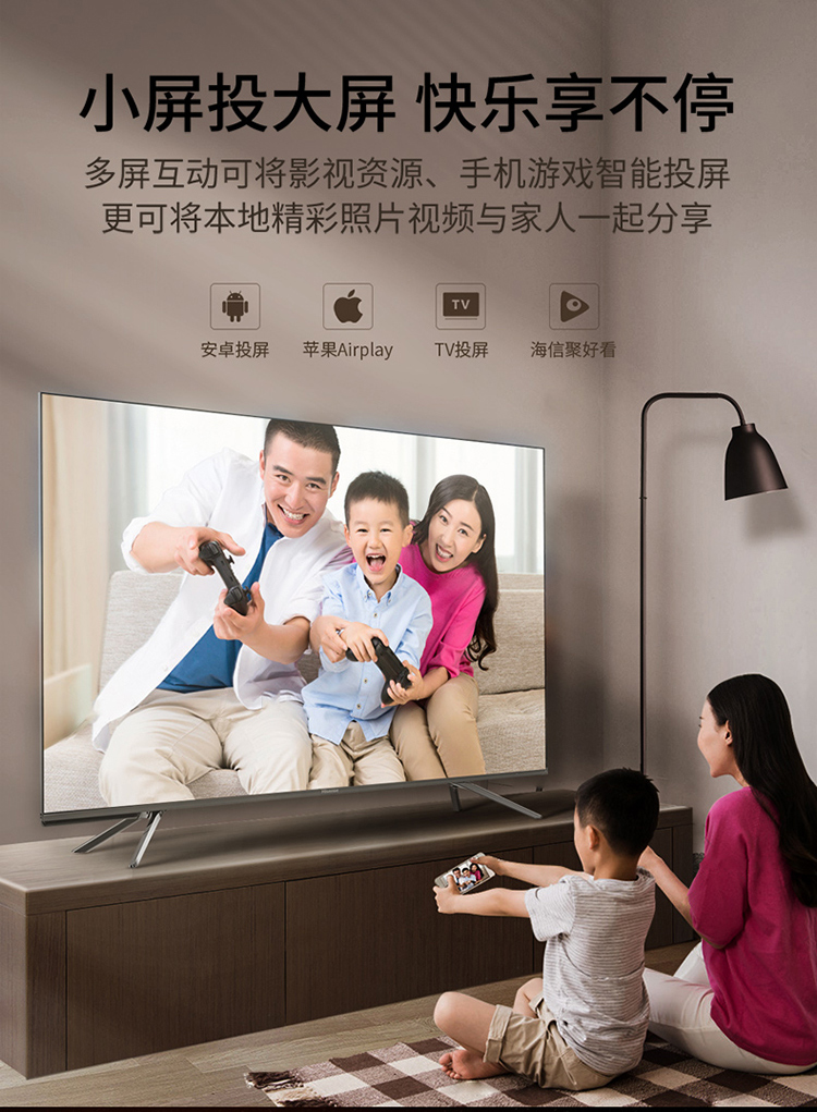 海信E55D系列覆盖50英寸、55英寸、65英寸和65英寸这四个版本,支持MEMC运动画面补偿,在观看体育赛事等高动态内容时,画面显示更流畅。支持4KHDR,杜比DTS音频解码。内置2GB+32GB存储组合,内置CA73*2+CA53*2处理器。带蓝牙5.0。支持语音操控,可直接向海信小聚发出指令。支持图片搜索。支持airplay,安卓等投屏功能。两个usb 2.0接口,一个hdmi 2.0接口。