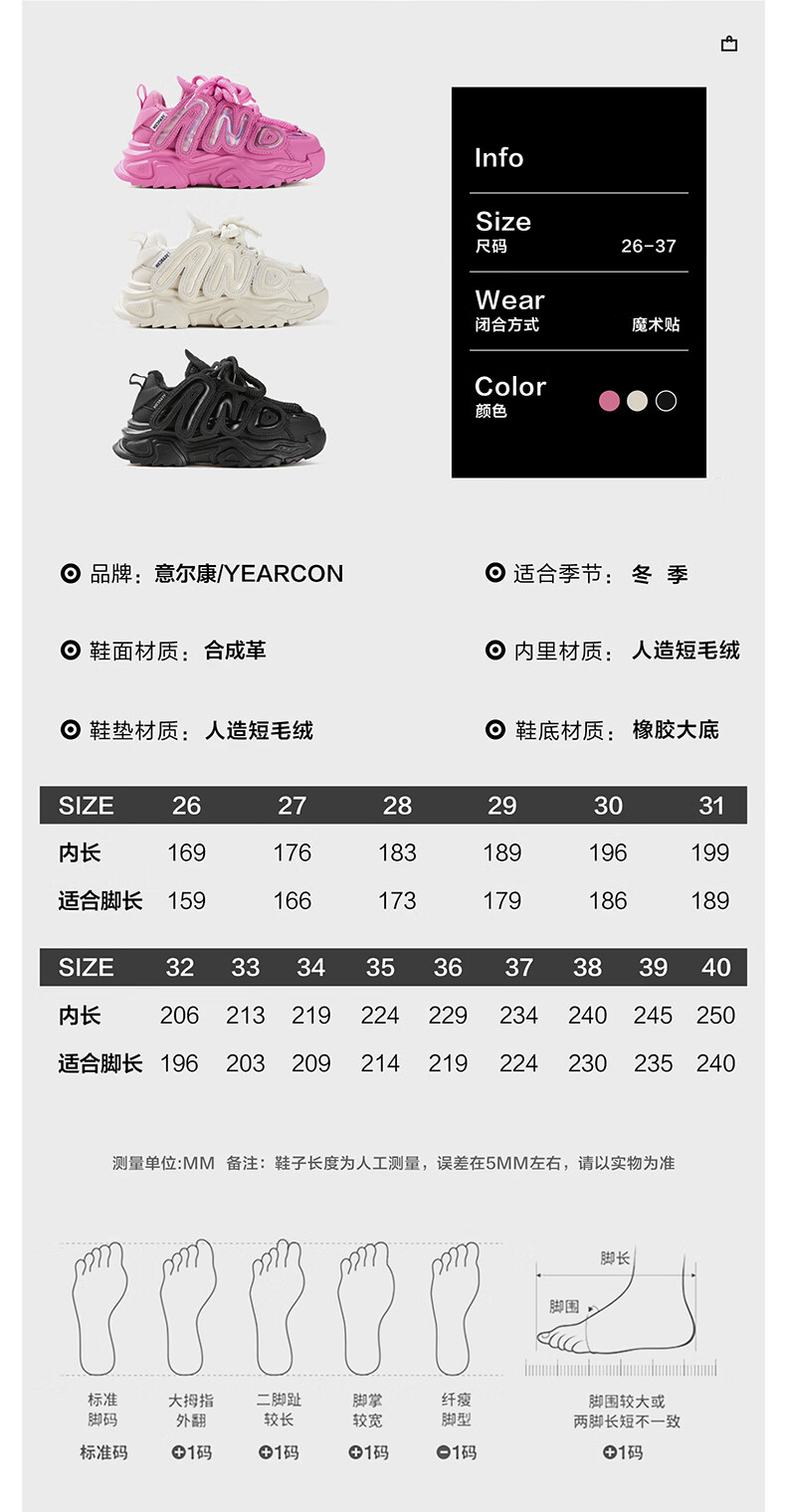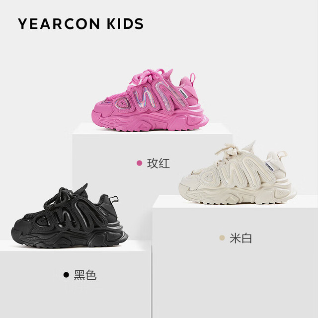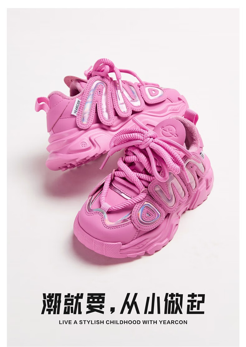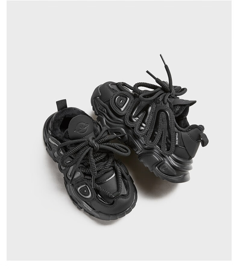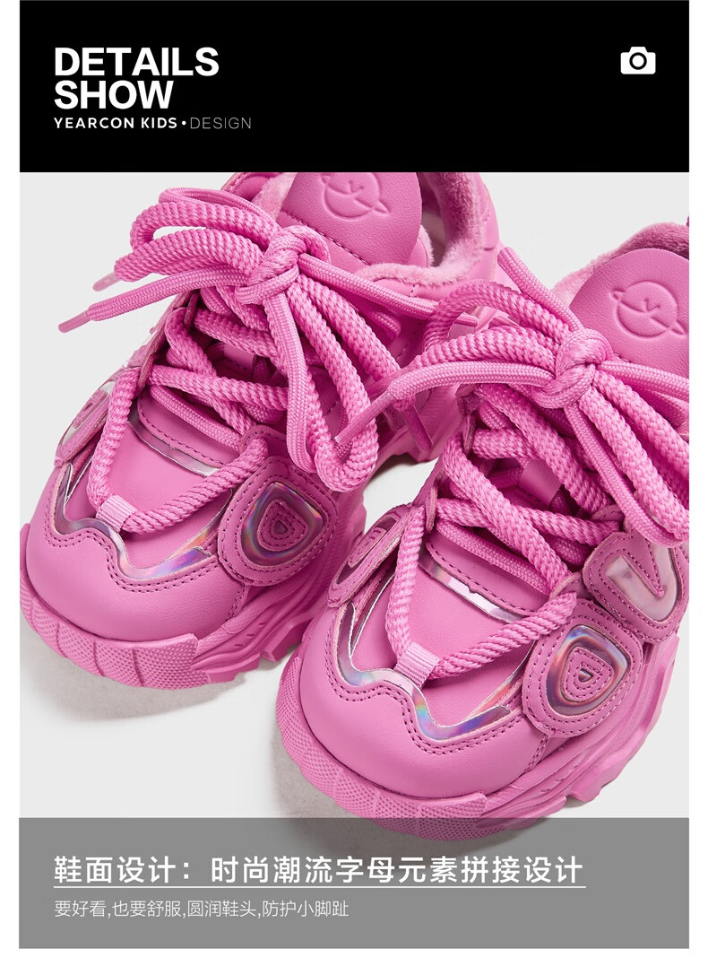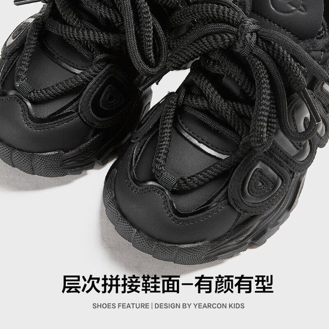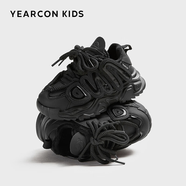 YEARCON 意尔康 童鞋女童运动鞋儿童加绒保暖老爹鞋男童二棉鞋 黑色 32