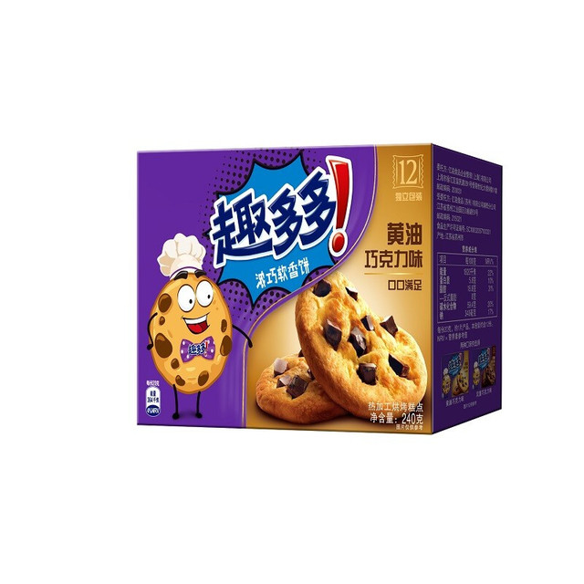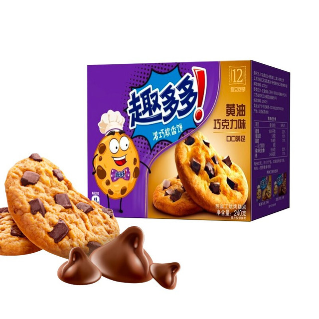 趣多多这款黄油巧克力味浓巧软香饼 ,配料选用小麦粉、乳粉等,富含蛋白质、脂肪等营养物质,满足人体营养需求。焦黄色的饼体嵌有黑色巧克力颗粒,口感香甜松软。独立小袋包装,便于携带,开袋即食。保质期为9个月,请置于阴凉干燥处保存,避免阳光直射。