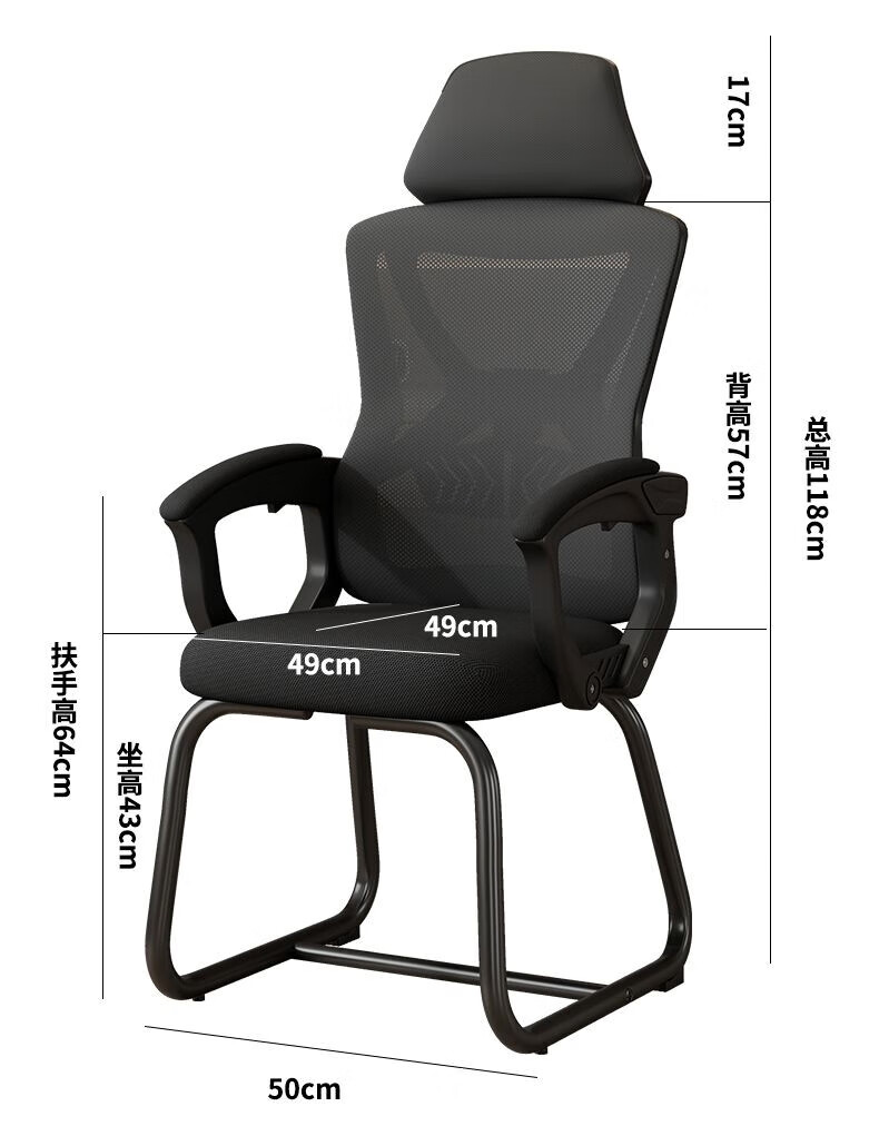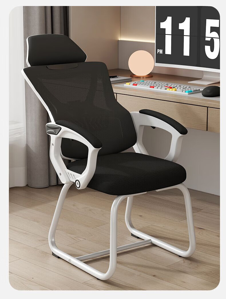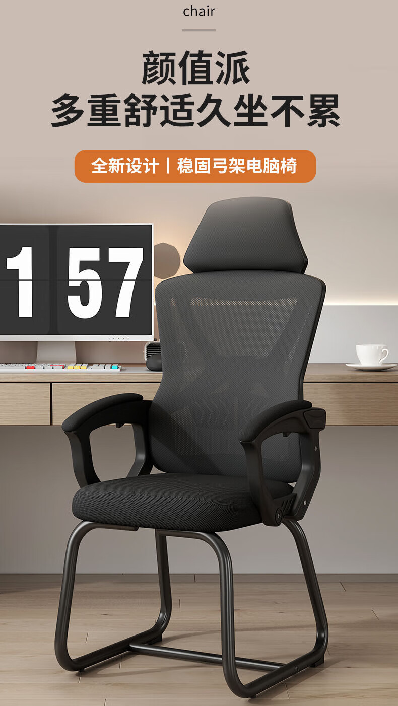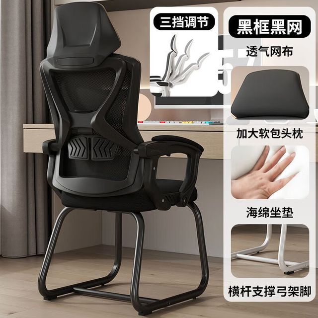 舒客艺家电脑椅办公椅职员网椅会议椅家用靠背休闲椅子弓形宿舍学习椅 WE黑色弓形-可后躺【海绵款】