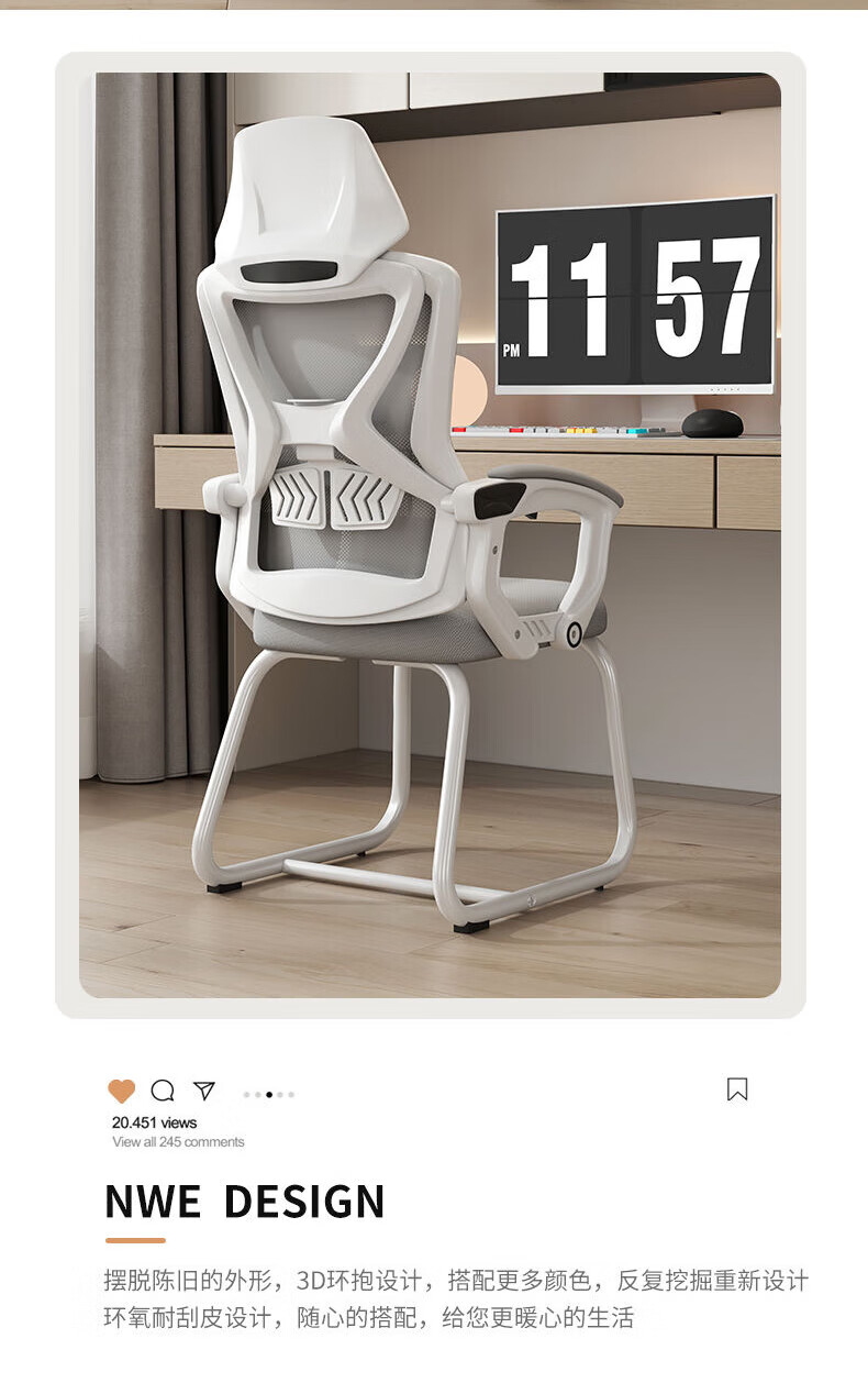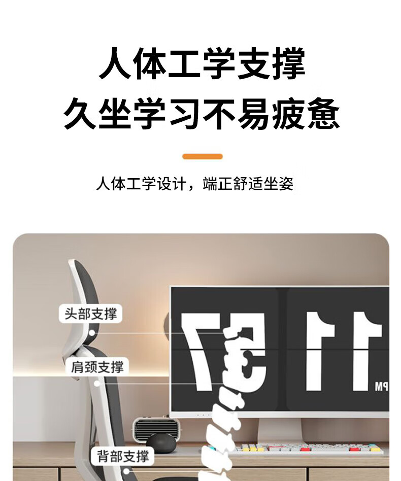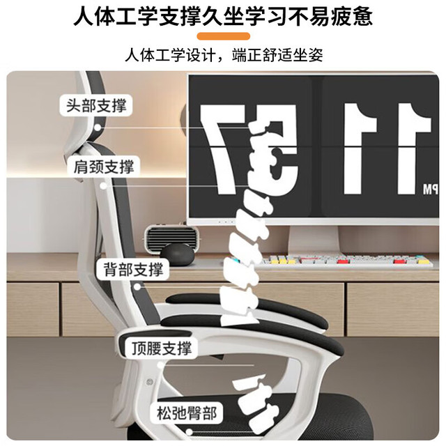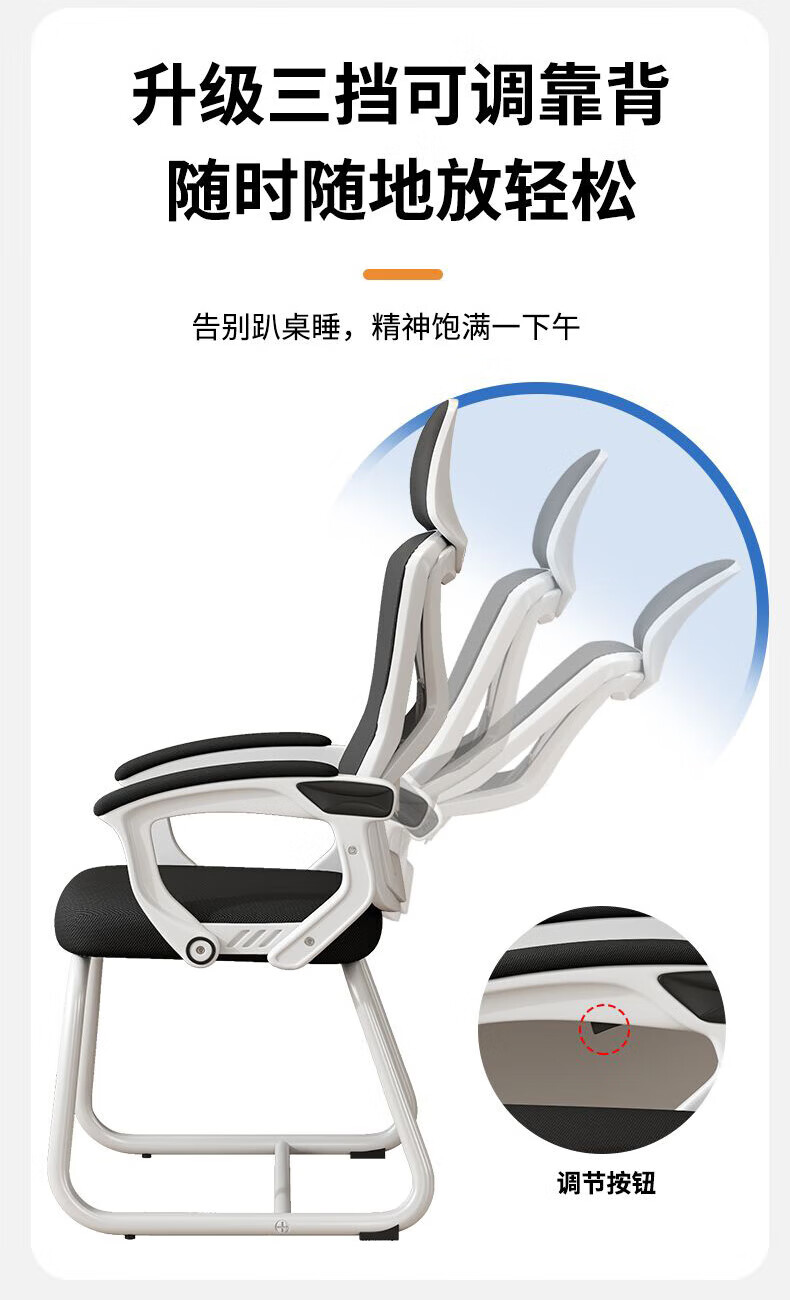 舒客艺家 电脑椅办公椅职员网椅会议椅子家用靠背椅休闲椅宿舍学习椅 平稳椅-白黑+乳胶【80%人选择】