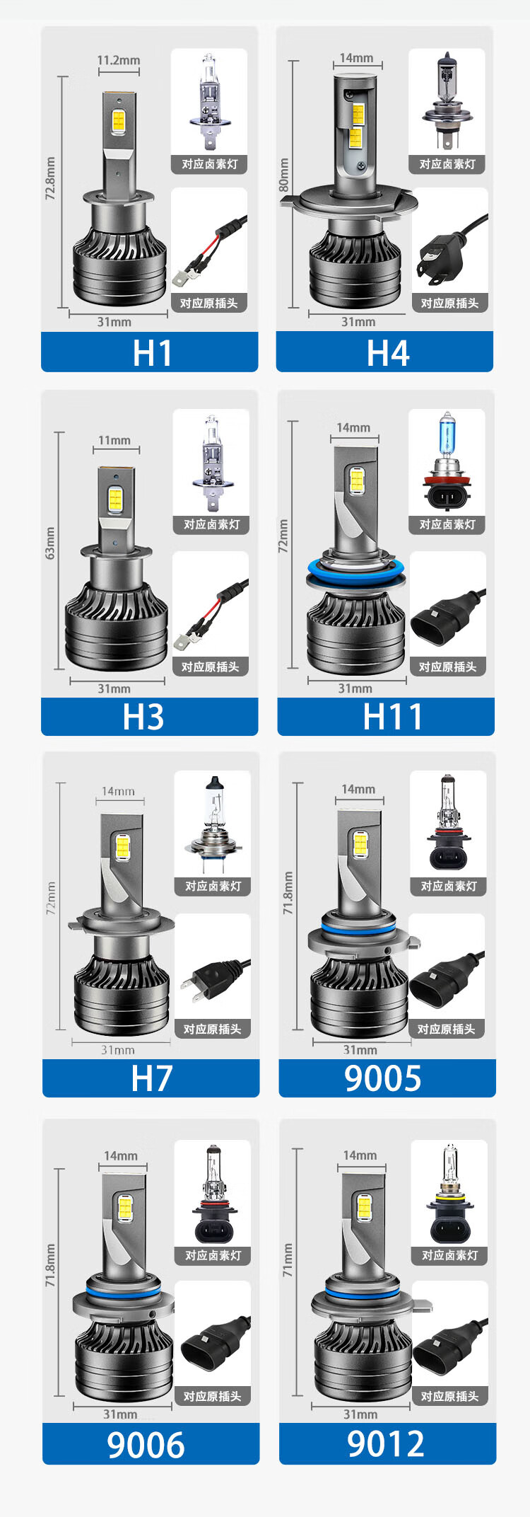 CHUMTE 聚光 LED车灯灯泡 H1,H3,H4,H7,H11,H8/9/11,HB3/9005,HB4/9006,9012